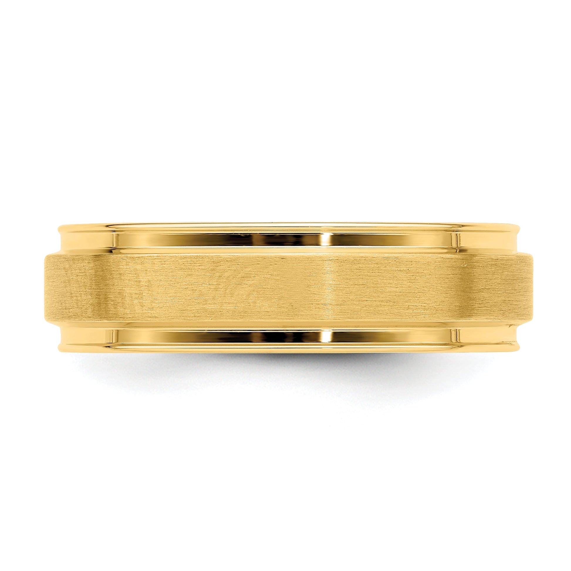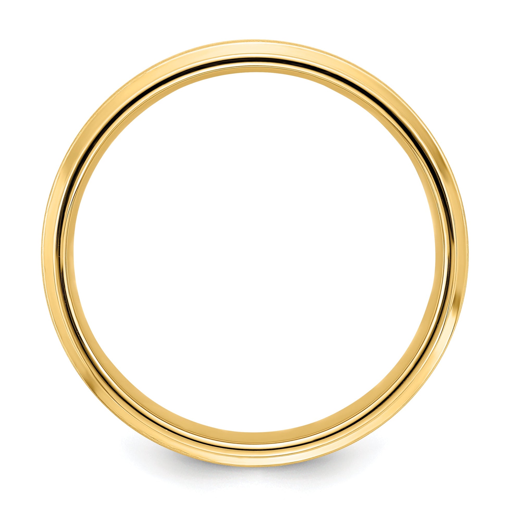 Meet the 14K Yellow Gold 6mm Heavyweight Comfort Fit Brushed Satin Fancy Wedding Band. This ring offers a sturdy feel with its substantial weight and smooth comfort fit. Its polished and brushed finish adds a touch of style, while the single side stone enhances its elegance. Crafted from pure 14K yellow gold, the band measures 6mm wide, making it perfect for daily wear. Whether you’re tying the knot or celebrating your love, the 14K Yellow Gold 6mm Heavyweight Comfort Fit Brushed Satin Fancy Wedding Band is built to last and stand out.