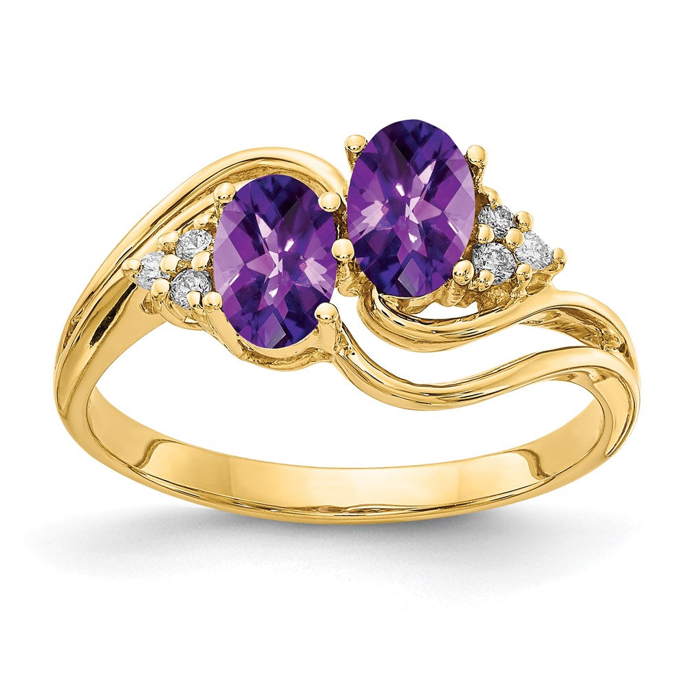 14k Yellow Gold 6x4mm Oval Amethyst Checker VS Diamond ring