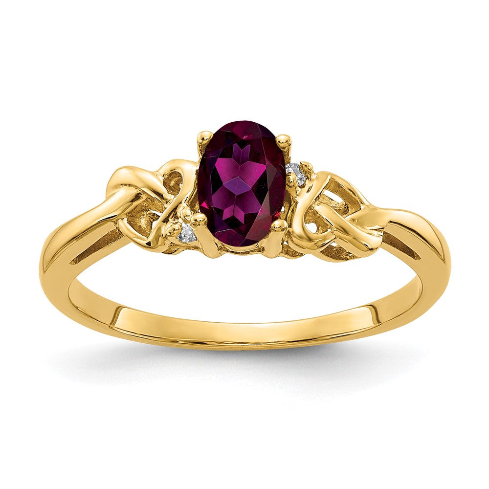 14k Yellow Gold 6x4mm Oval Rhodolite Garnet A Diamond ring