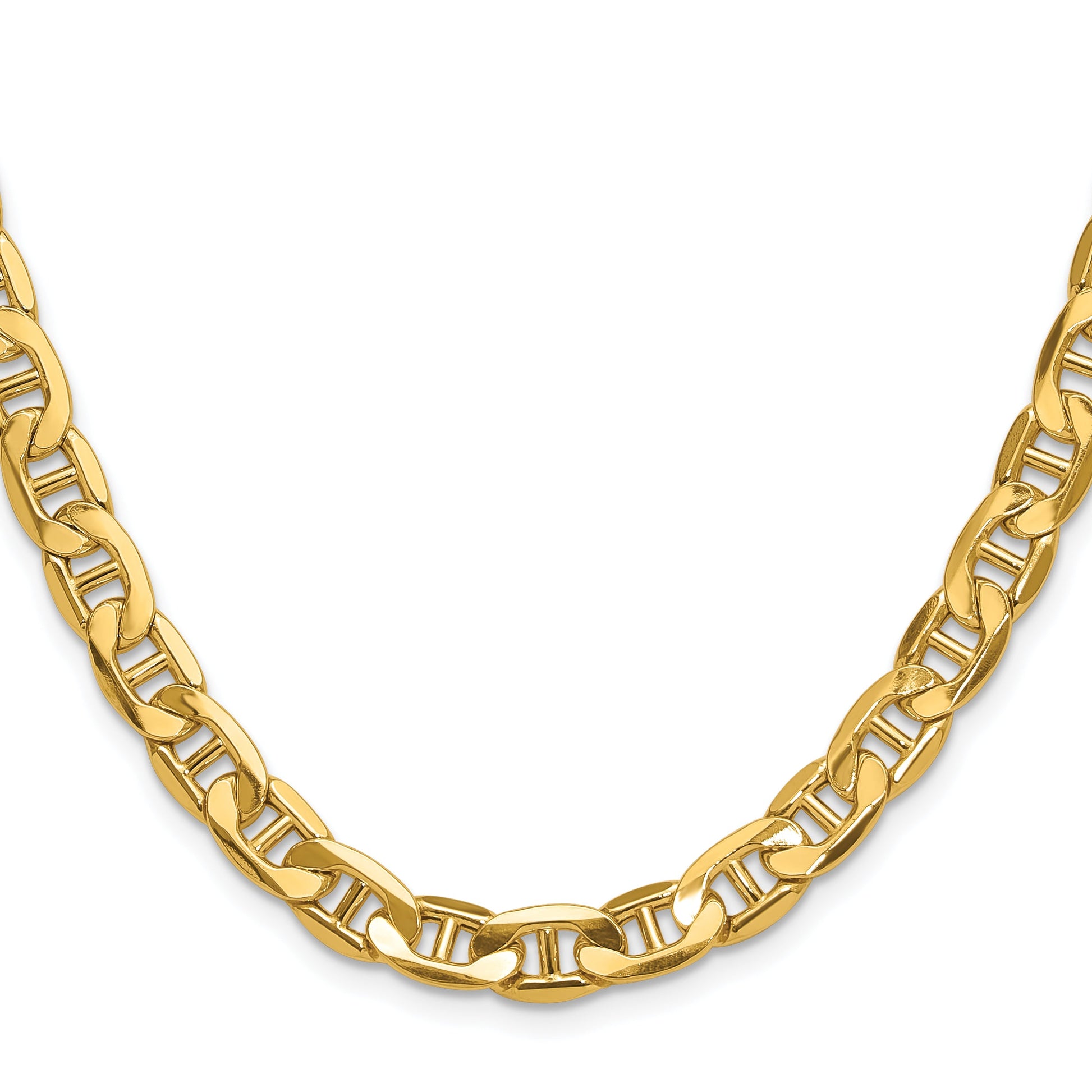 Introducing the 14K Yellow Gold 7.0mm Semi-Solid Anchor Chain, a timeless piece for any jewelry collection. Crafted from 14K gold, its warm yellow hue brings out an elegant shine. The 7.0mm width offers a substantial yet refined look, perfect for both casual and formal outfits. Its semi-solid design provides durability without sacrificing style. Elevate your style with the 14K Yellow Gold 7.0mm Semi-Solid Anchor Chain, the perfect blend of classic sophistication and modern charm.