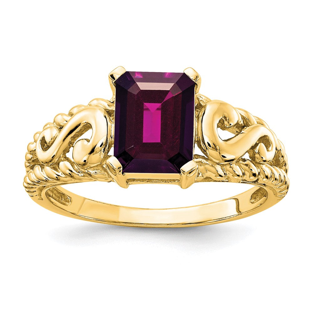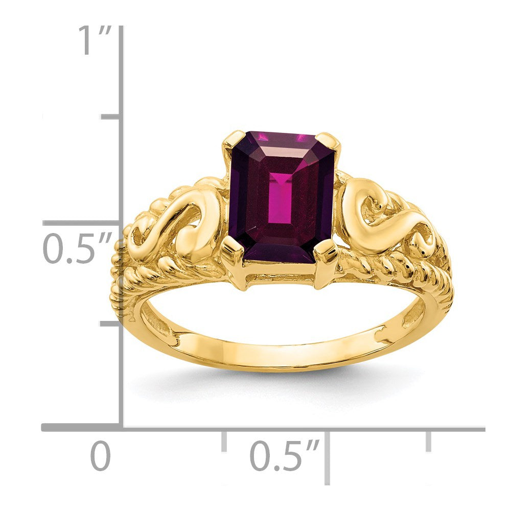 14k Yellow Gold 8x6mm Emerald Cut Rhodolite Garnet ring