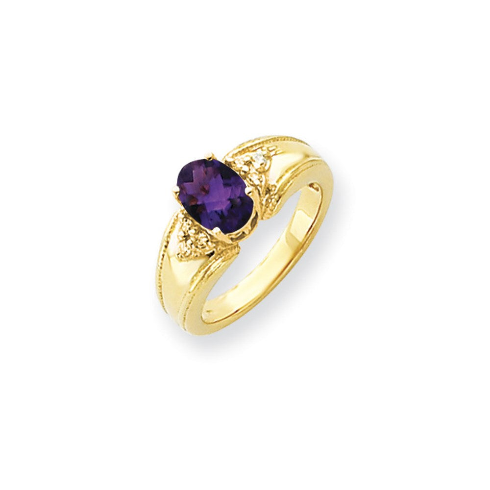 14k Yellow Gold 8x6mm Oval Amethyst Checker AAA Diamond ring