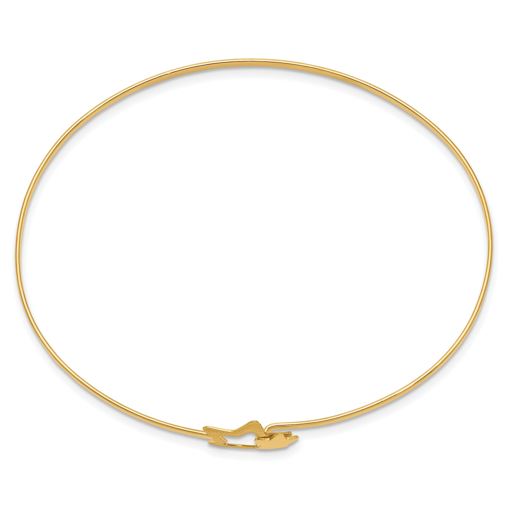 Introducing the 14K Yellow Gold Brushed And Polished Stars Flexible Bangle, a stunning piece that adds shimmer to any outfit. Made from premium 14K gold, this bangle features a unique blend of polished and brushed finishes that catch the light effortlessly. At 7 inches long, it fits most wrists comfortably, with a flexible design for easy wear. The star charms, each measuring 11 mm, bring a touch of whimsy and elegance. The hook clasp ensures secure closure. Elevate your style with the 14K Yellow Gold Brushed And Polished Stars Flexible Bangle, perfect for any occasion.