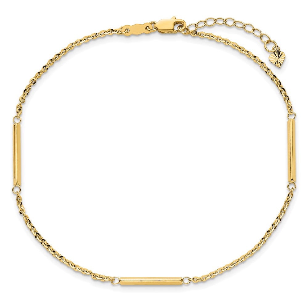 14K Yellow Gold Cable Chain and Bar 3-Station 9 Inch Plus 1 Inch Extender - Total 10 Inch Anklet