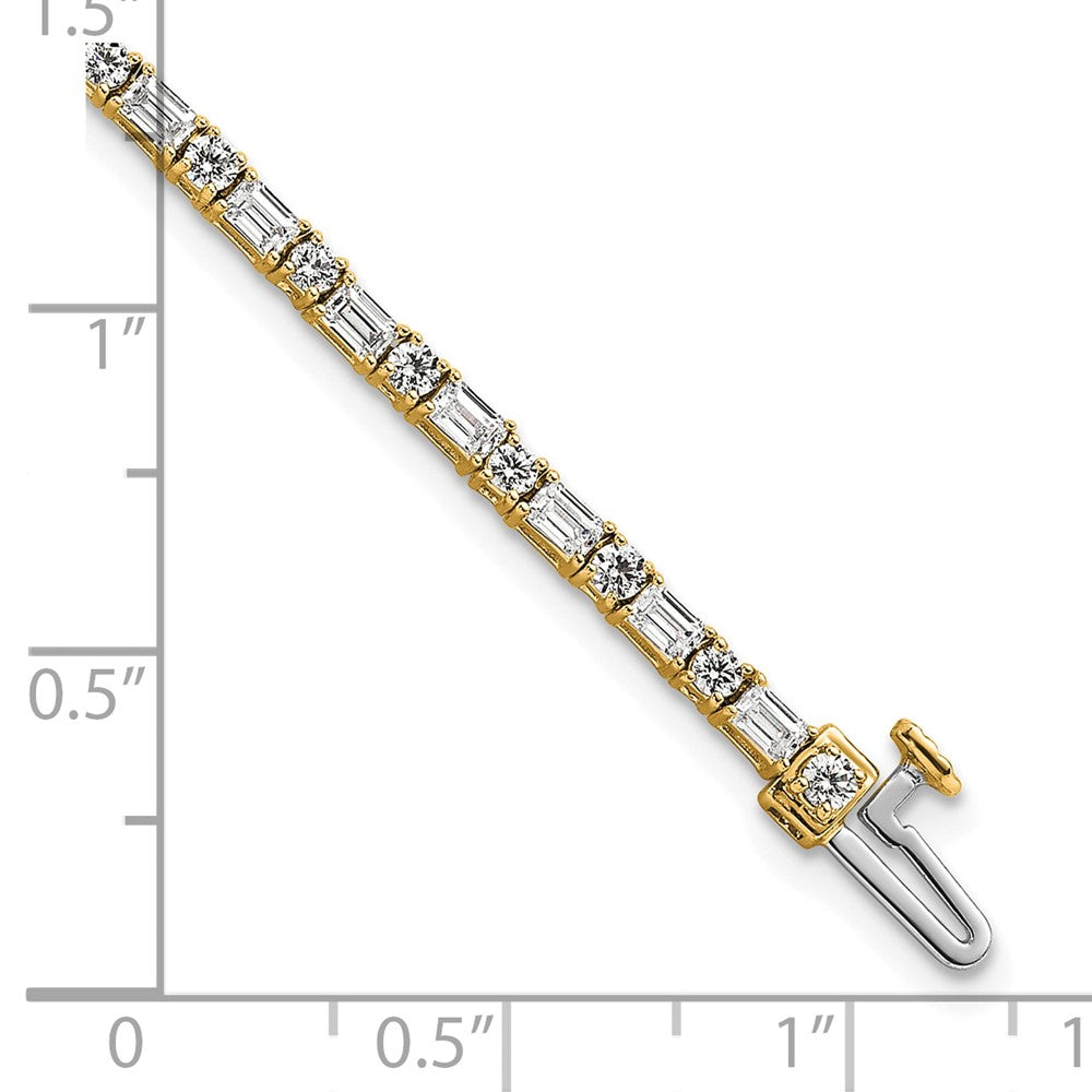 Discover the stunning 14K Yellow Gold Tennis Bracelet, a perfect blend of elegance and style. Crafted from genuine 14K gold, this bracelet features vibrant lab-grown emeralds with VS/Si clarity and sparkling round diamonds, all certified for quality. Its classic tennis design adds a touch of sophistication, making it ideal for any occasion. The bright yellow gold setting enhances the vivid emeralds and shimmering diamonds for a bold look. The 14K Yellow Gold Tennis Bracelet offers durable beauty and timeless appeal, sure to catch eyes and boost your style.