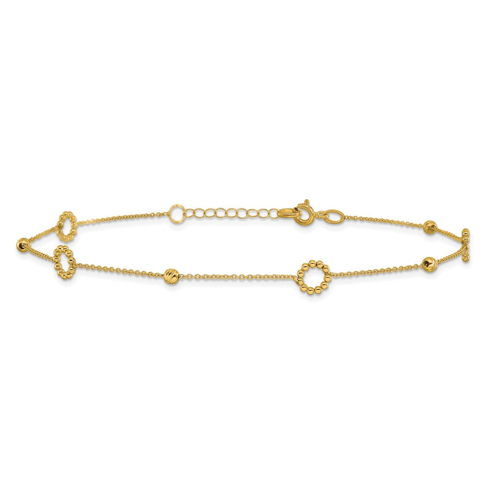 14K Yellow Gold Circle and Diamond-cut Bead 10 Inch Plus 1 Inch Extender - Total 11 Inch Anklet