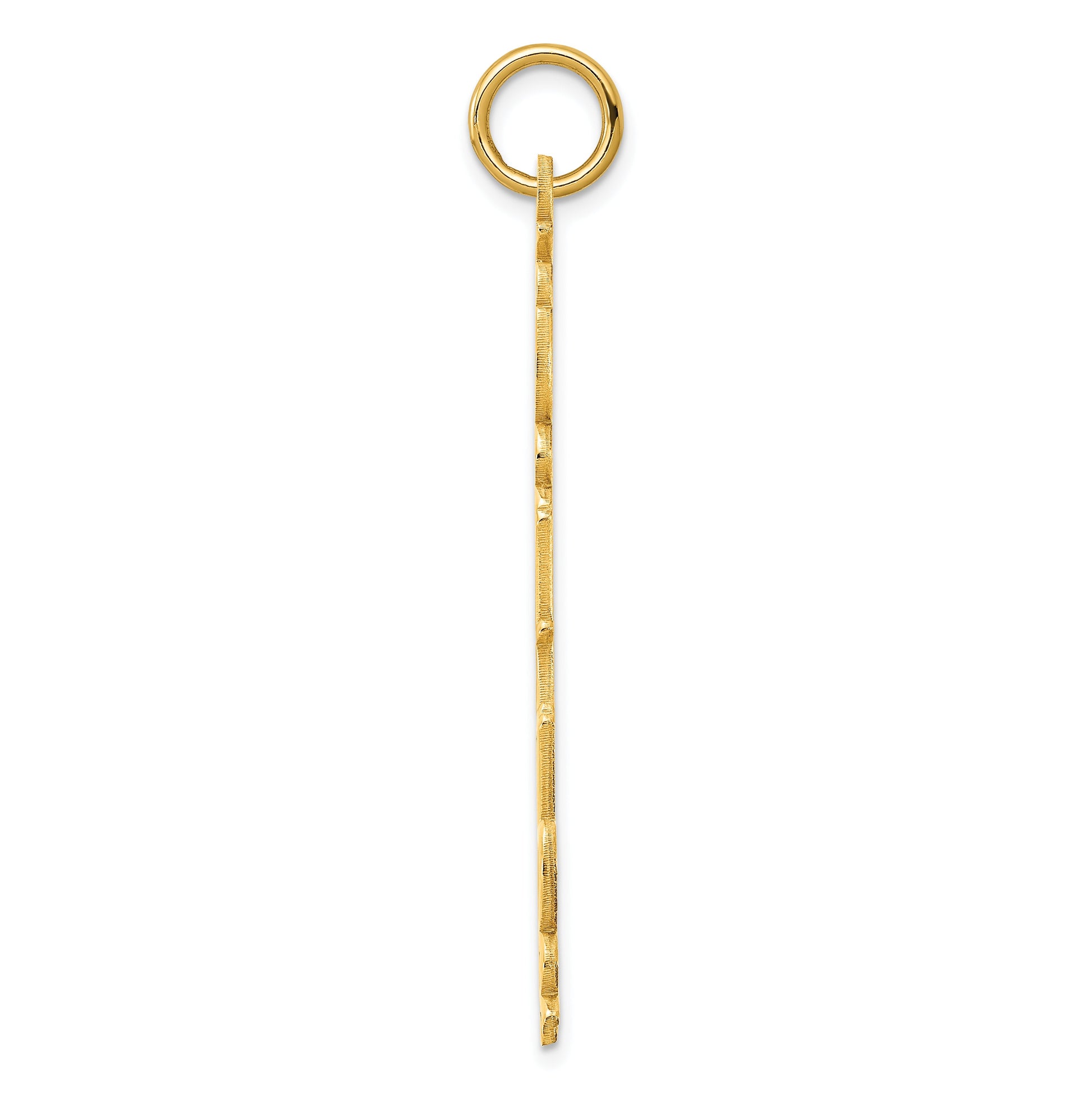 The 14K Yellow Gold Cosmic Sans Font Name Plate Charm makes a bold style statement. Crafted from high-quality gold with a polished finish, this charm measures 34.23 mm long and 3.58 mm wide, giving it a sleek look. It features a personalized design, allowing you to add your name or message in a clean, modern font. The charm is lightweight at just 0.68 mm thick, making it comfortable for everyday wear. Perfect for women who want a chic piece with a personal touch, the 14K Yellow Gold Cosmic Sans Font Name Plate Charm is a must-have for jewelry lovers looking to add a unique accent to their collection.