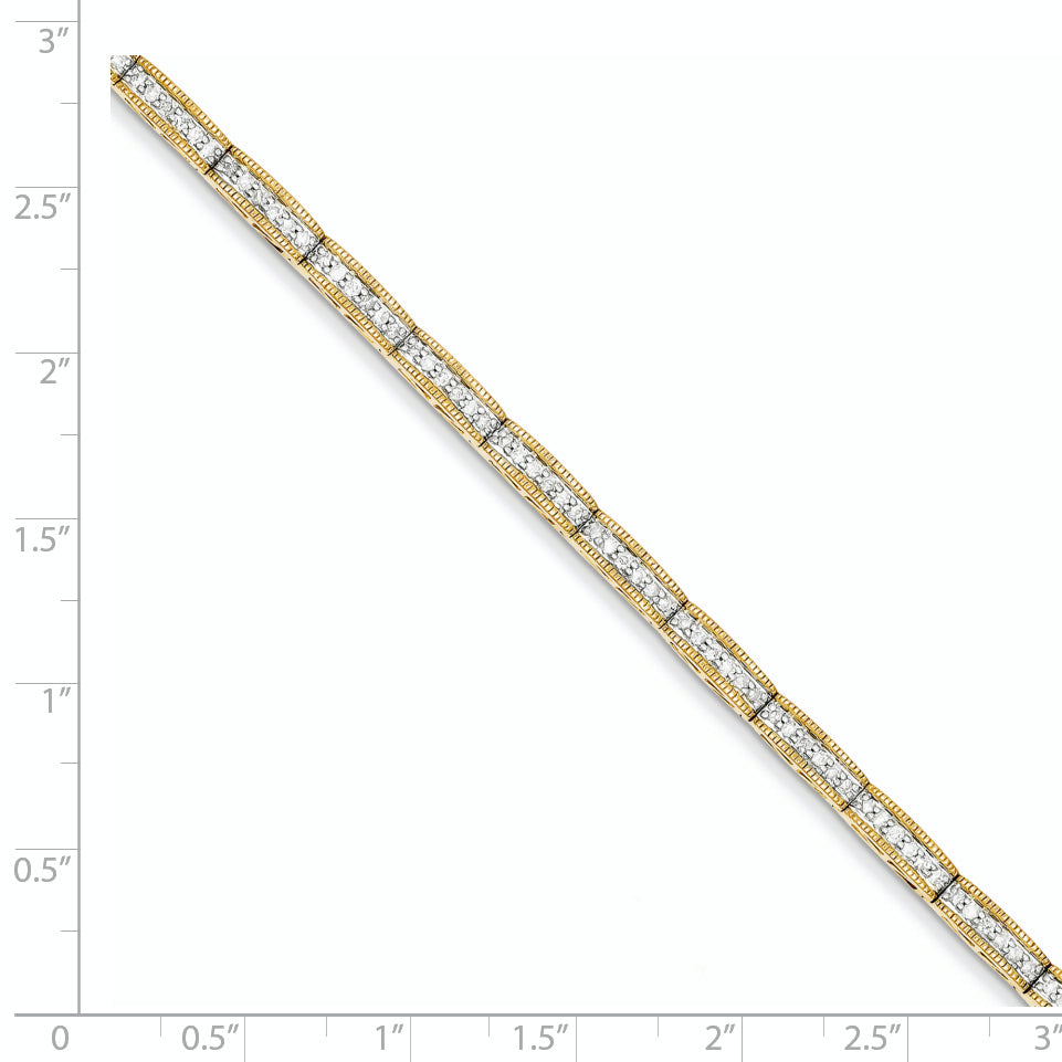 Introducing the 14K Yellow Gold Diamond Bracelet, a stunning piece that blends elegance with durability. Crafted from high-quality 14K gold, this bracelet features a solid design accented with 114 natural round diamonds. Each stone, heated for extra sparkle, adds a touch of shine with a total weight of 0.0089 carats. The 7-inch chain, with a 4 mm width and secure box clasp, offers a comfortable fit for daily wear. This bracelet's polished finish and premium craftsmanship make it a perfect gift for someone special or a great addition to your jewelry collection.