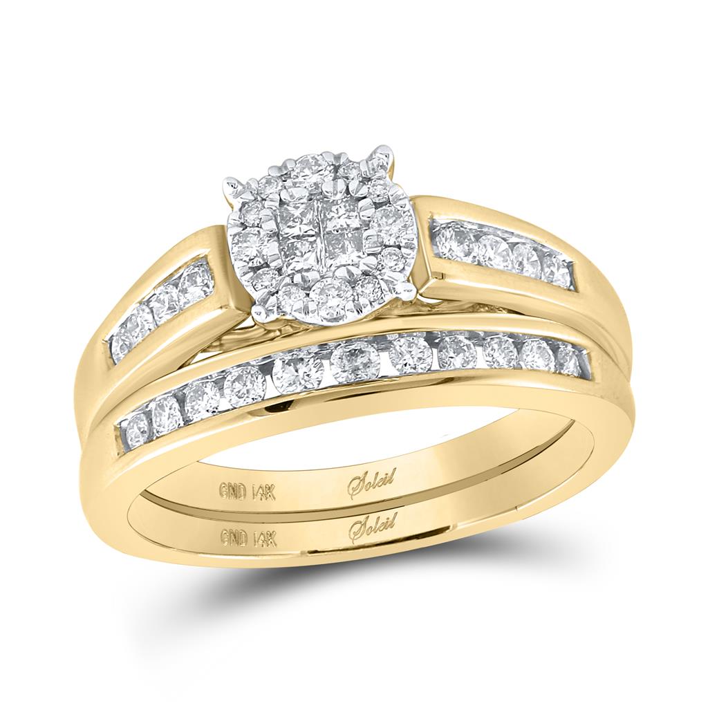 14k Yellow Gold Diamond Cluster Bridal Wedding Ring Set 1/2 Cttw