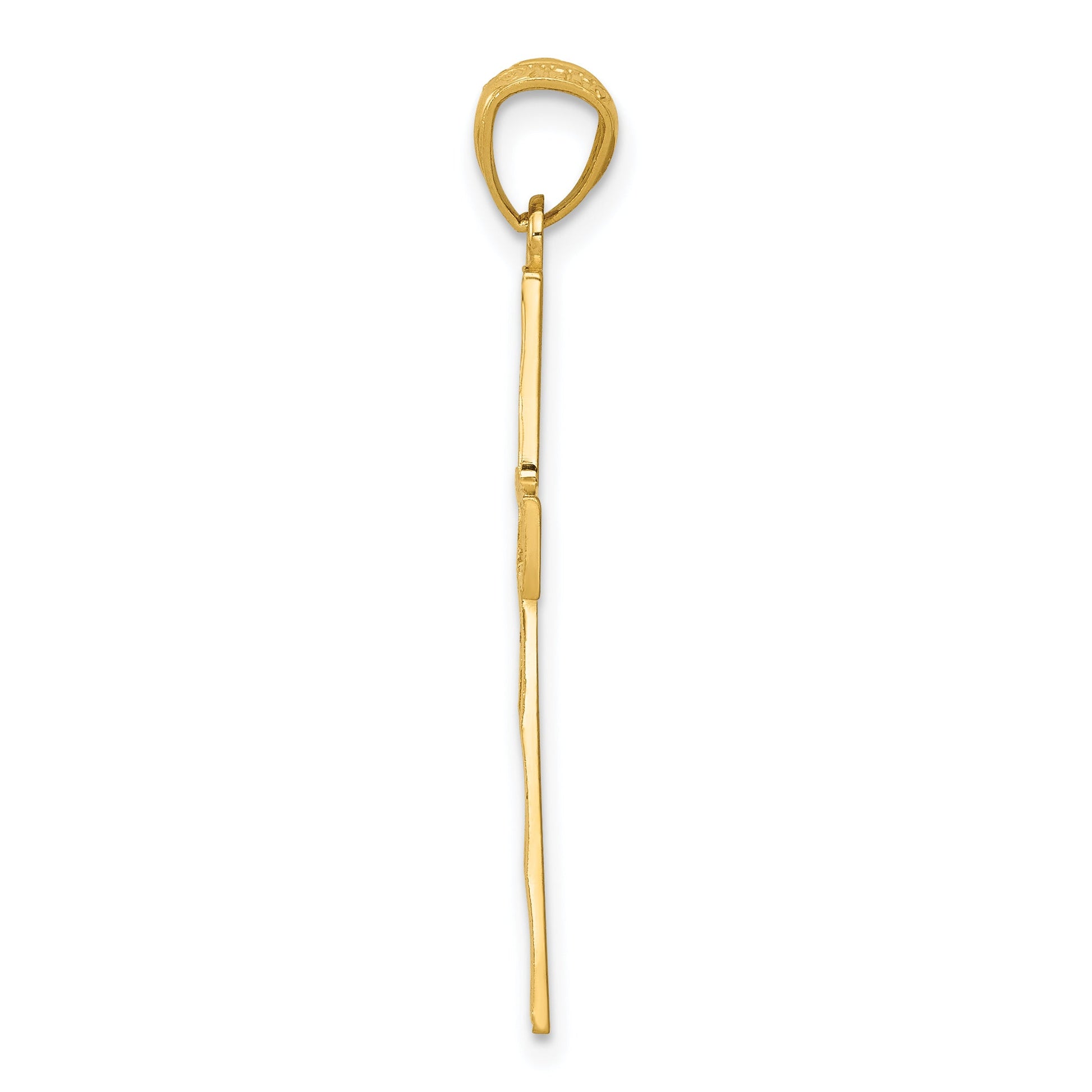 Discover elegance with our 14K Yellow Gold Diamond-Cut Filigree Cross Pendant. Made with pure 14-karat gold, this piece combines traditional beauty with modern craftsmanship. The pendant measures 34 mm in length and 19 mm in width, offering a substantial presence that stands out. Its diamond-cut design adds a touch of sparkle, making it a perfect accessory for daily wear or special occasions. Flat-backed for a comfortable fit, it hangs beautifully with a bail width of 3.15 mm. This unique pendant showcases the timeless allure of gold and makes a meaningful gift. Get your 14K Yellow Gold Diamond-Cut Filigree Cross Pendant today and elevate your jewelry collection.