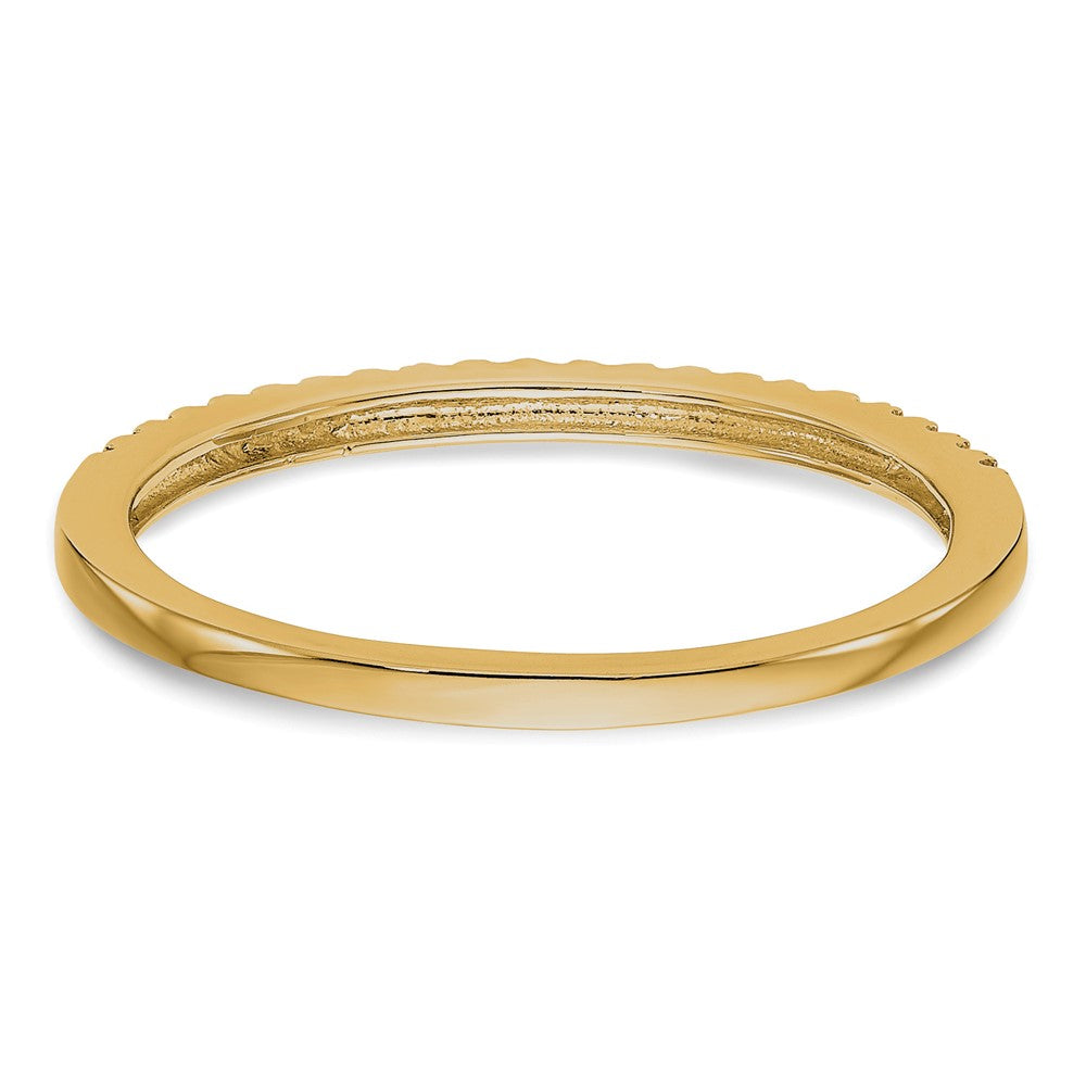 The 14K Yellow Gold Diamond Wedding Band is a stunning piece that adds charm to any bride’s ring. Crafted with pure 14K gold, this band features 21 sparkling round diamonds that sit securely in a prong setting. Each diamond, enhanced with I1 clarity, shines bright and complements the sleek 1mm width of the ring. Perfect for expressing love, this wedding band mixes elegance with durability. The natural stones and solid gold make it a dependable choice. Whether you wear it alone or with other pieces, the 14K Yellow Gold Diamond Wedding Band promises style and quality that last a lifetime.