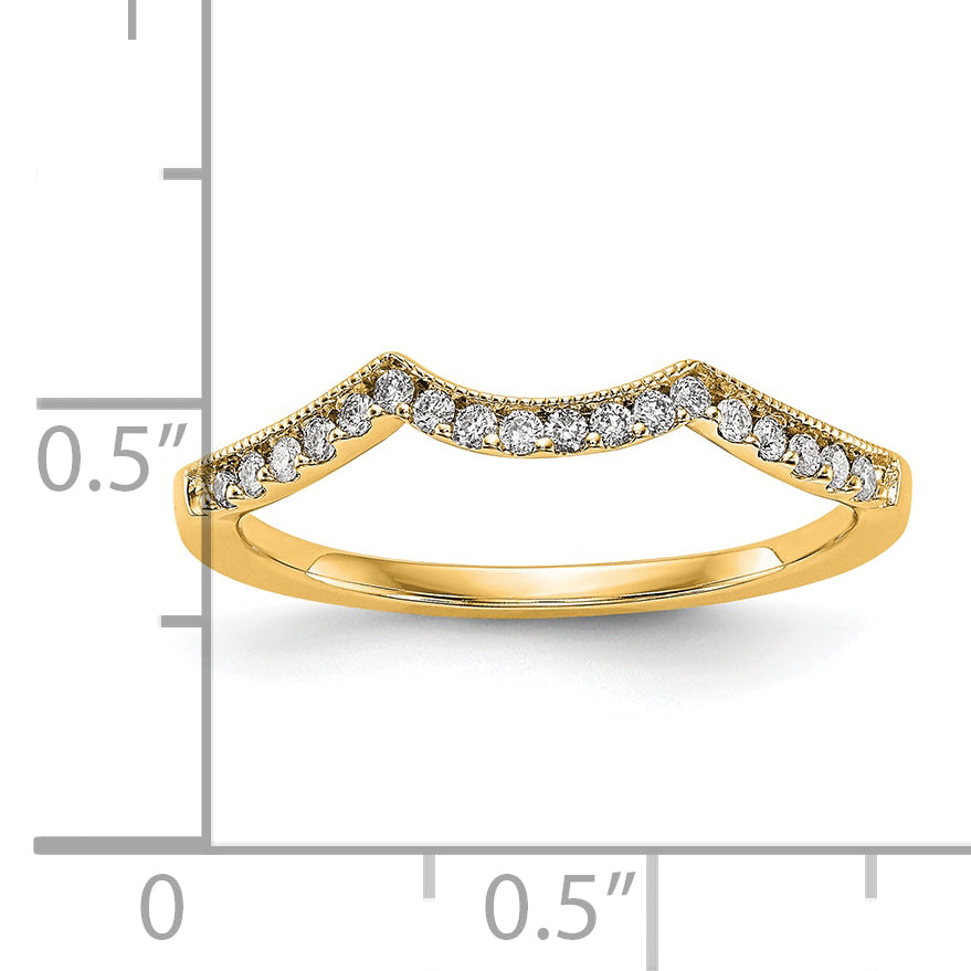 The 14K Yellow Gold Diamond Wedding Band is a timeless piece that fits well and shines brightly. Crafted from polished 14K gold, this ring features 18 natural round diamonds, each 1.5 mm in size, set in prongs for a secure hold. Its classic design and solid build make it a durable choice for everyday wear. The band’s sleek width of just 1 mm gives it a subtle yet elegant look. Whether you're tying the knot or searching for a special gift, the 14K Yellow Gold Diamond Wedding Band offers quality style and lasting charm.