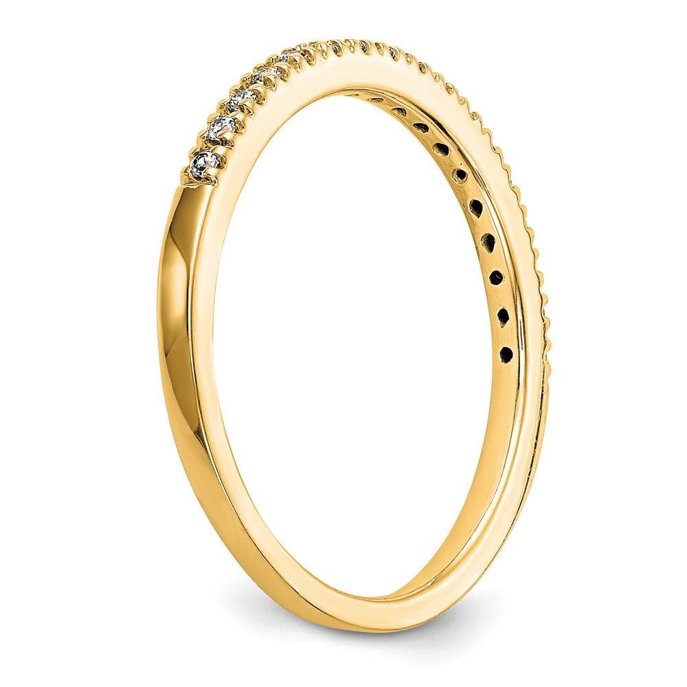 The 14K Yellow Gold Diamond Wedding Band is a classic choice for lasting love. Crafted from pure 14K gold, this ring features 17 shimmering round diamonds set in a sturdy prong design. Each stone offers clear sparkle with a total weight of just 0.006 carats, adding subtle elegance. The band’s sleek 1mm width makes it perfect for daily wear. Available in sizes 6 to 8, this complete wedding band is made with natural diamonds that shine bright and hold their value. Experience quality, style, and tradition with the 14K Yellow Gold Diamond Wedding Band.