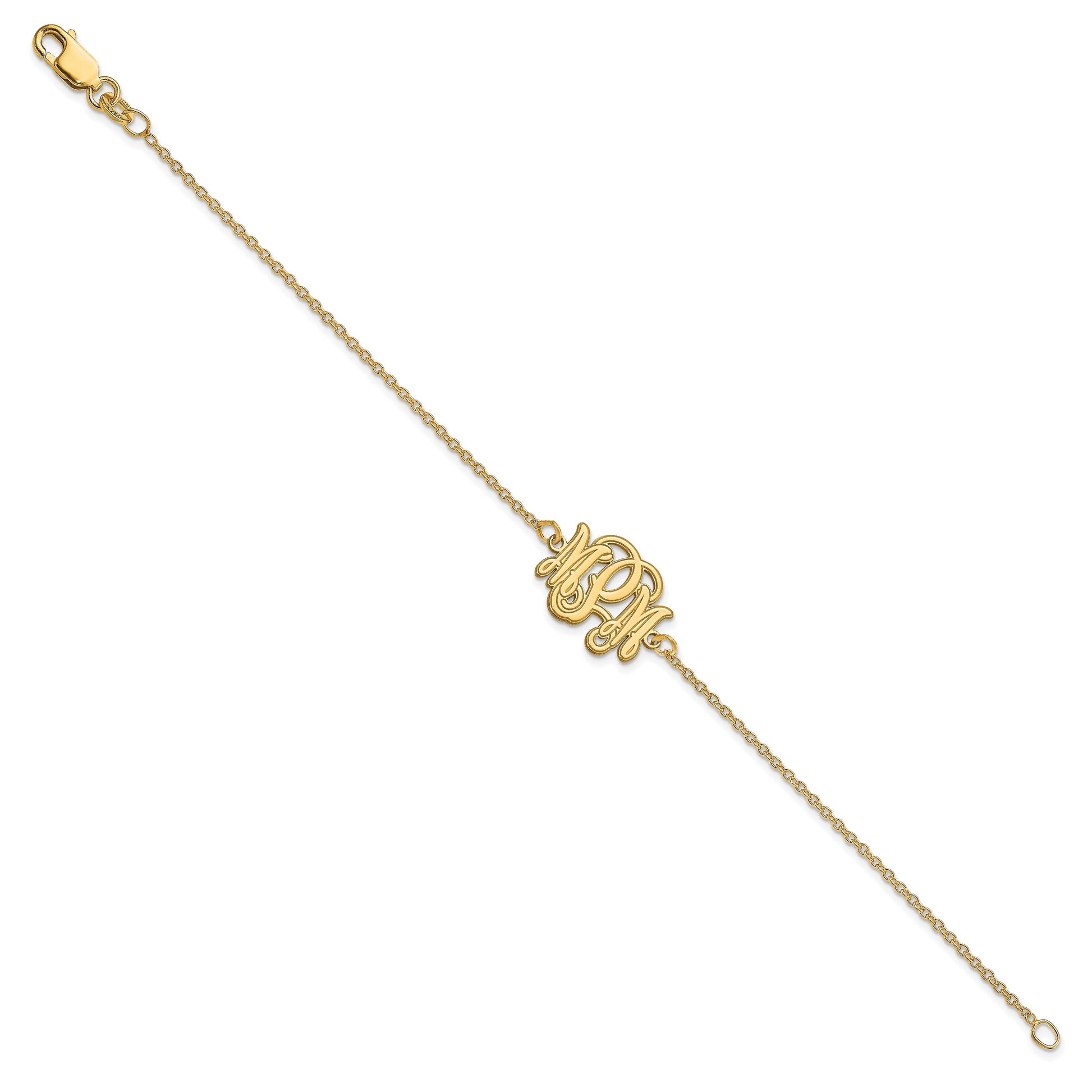Discover the elegance of the 14K Yellow Gold Etched Monogram Bracelet, crafted to add a personal touch to your jewelry collection. This beautiful bracelet features a polished finish combined with laser-etched details, creating a unique and refined look. The lobster clasp ensures it stays secure on your wrist, making it ideal for daily wear or special occasions. Designed specifically for women, the bracelet showcases personalized monogram details that truly stand out. The 14K yellow gold gives it a warm, luxurious feel that complements any outfit. Embrace your style with the 14K Yellow Gold Etched Monogram Bracelet, a piece that blends simplicity and elegance effortlessly.
