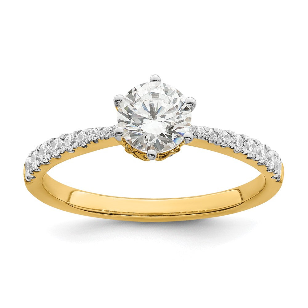 14K Yellow Gold Gold Leaf Design (Holds 3/4 carat (5.8mm) Round Center) 1/4 carat Diamond Semi-Mount Engagement Ring