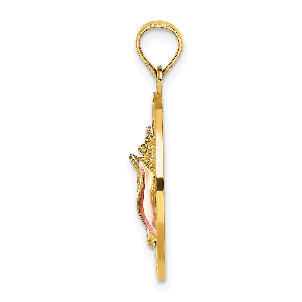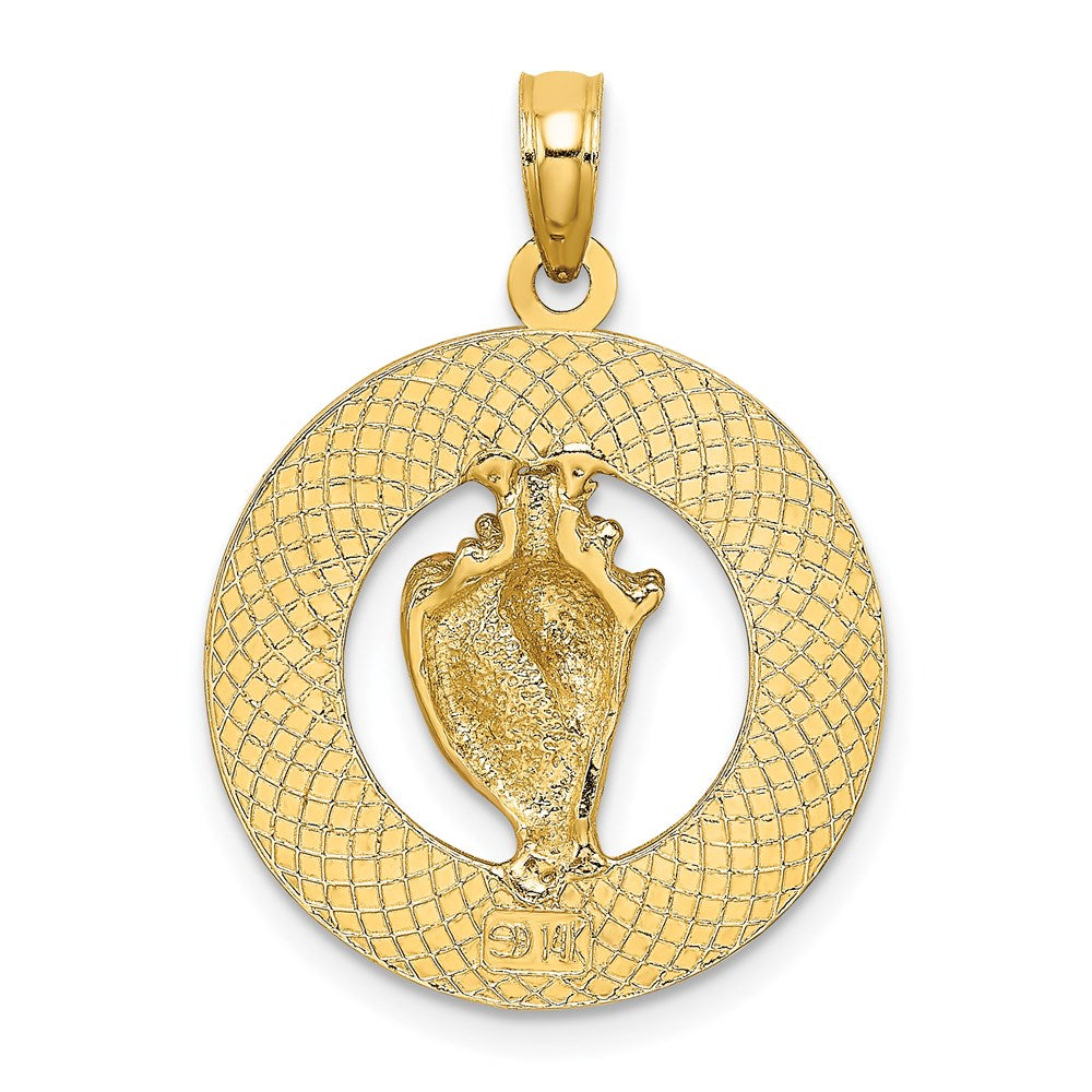 14k Yellow Gold HILTON HEAD ISLAND Enamel Conch Shell Circle Charm