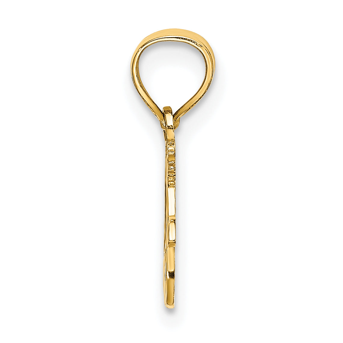 Introducing the 14K Yellow Gold I Heart Birds Charm, a splendid piece that adds a touch of elegance to any jewelry collection. Crafted with polished 14K yellow gold, this charm stands out with a length of 13.45 mm and a width of 14.3 mm, making it a perfect fit for your favorite necklace or bracelet. The charm features a beautifully textured back, enhancing its appeal. The bail measures 4.5 mm in width and 5 mm in length, ensuring it hangs gracefully. Adorn your accessories with the timeless beauty of the 14K Yellow Gold I Heart Birds Charm.