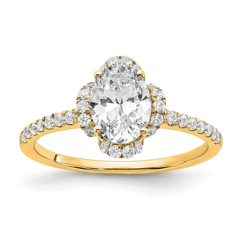The 14k Yellow Gold Lab Grown Diamond VS/SI FGH Oval Engagement Ring is a stunning piece for those seeking elegance and modern design. Crafted with 14k gold, its polished finish shines brilliantly. At its center, the ring showcases an impressive oval setting, surrounded by 30 round lab-grown diamonds for extra sparkle. Each diamond exhibits fine clarity, ranging from VS to SI, and a color grade between F to H, offering a pure and vibrant glow. With a delicate band that is just 1.68mm wide, this ring demonstrates sophistication and simplicity. Perfect for unforgettable proposals, the 14k Yellow Gold Lab Grown Diamond VS/SI FGH Oval Engagement Ring embodies timeless beauty.