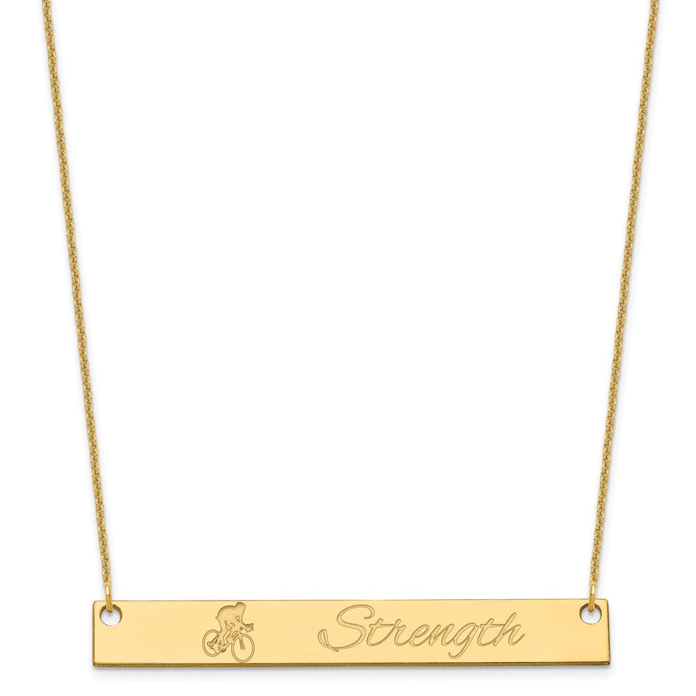 Make a bold statement with the 14K Yellow Gold Large Customized Bar Necklace. Crafted from pure 14K gold, this necklace boasts a polished finish that adds shine and style. At 18 inches long, its sturdy cable chain features a 1mm width and a lobster clasp for secure wear. The large bar pendant measures 50.95 mm wide and 6.93 mm high, perfect for personalized initials or names. This unisex jewelry piece is designed for those who want to stand out and express themselves. The 14K Yellow Gold Large Customized Bar Necklace offers a blend of quality and style, making it a must-have accessory.