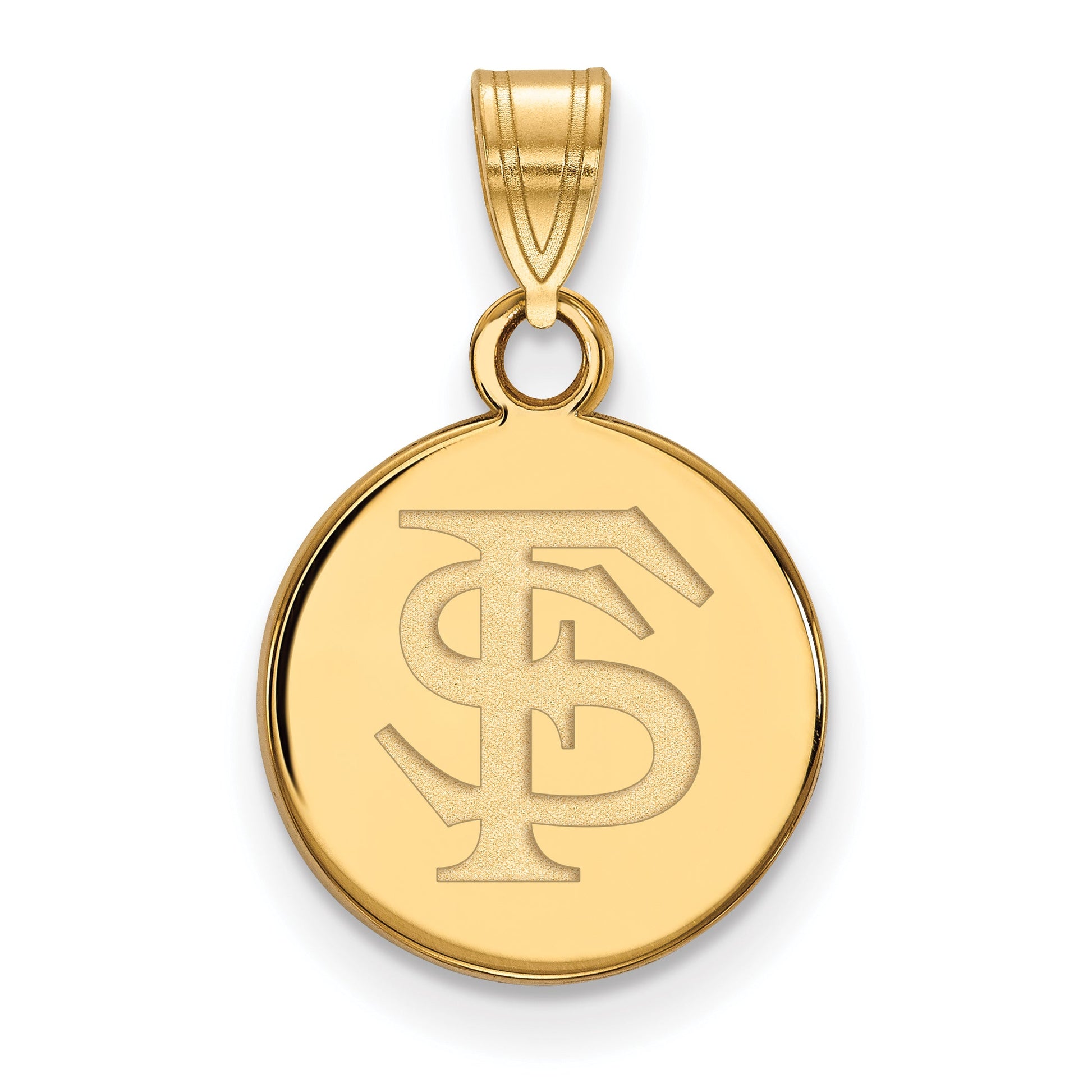 Show off your school pride with the LogoArt Florida State University F-S Small Disc Pendant. Made from bright 14K yellow gold, this pendant is polished to a sleek shine. It measures 18 mm long and features the iconic F-S logo in a laser-cut design. The small, lightweight disc easily slides onto your chain with a 3 mm bail, making it perfect for daily wear. Licensed by NCAA, this pendant connects you to Florida State University in a simple, stylish way. Grab the LogoArt Florida State University F-S Small Disc Pendant and wear your school spirit on your neck.