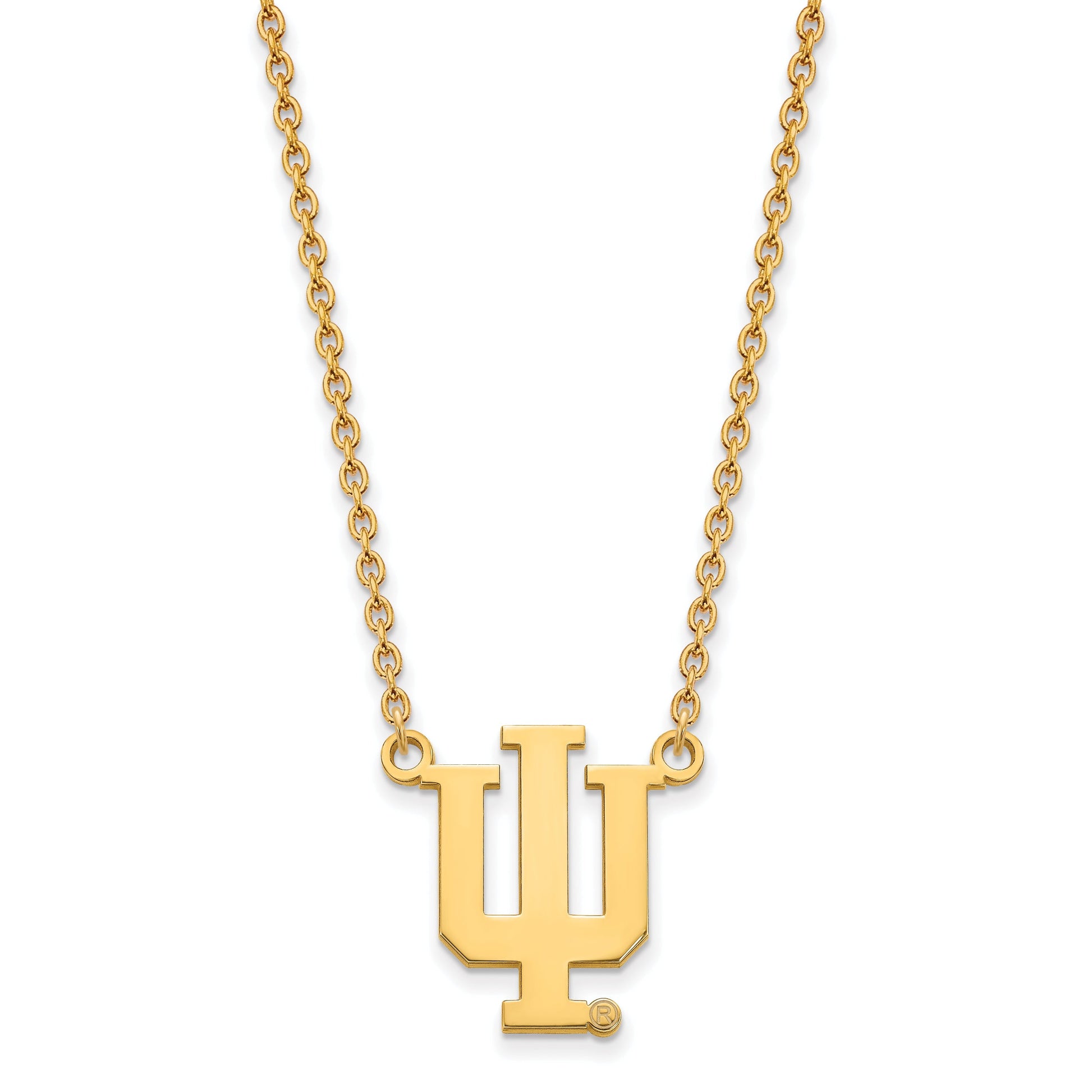Celebrate your pride with the LogoArt Indiana University I-U large pendant on an 18-inch yellow gold chain. Crafted from polished 14K gold, this necklace features a bold IU logo that’s laser cut for sharp detail. The pendant measures 21mm by 14mm and hangs from a 2mm cable chain, adding a sleek touch. The lobster clasp keeps it secure, making it perfect for daily wear or special occasions. Represent Indiana University with this high-quality jewelry piece that blends style and school spirit effortlessly. The LogoArt Indiana University I-U pendant is a must-have for true fans.