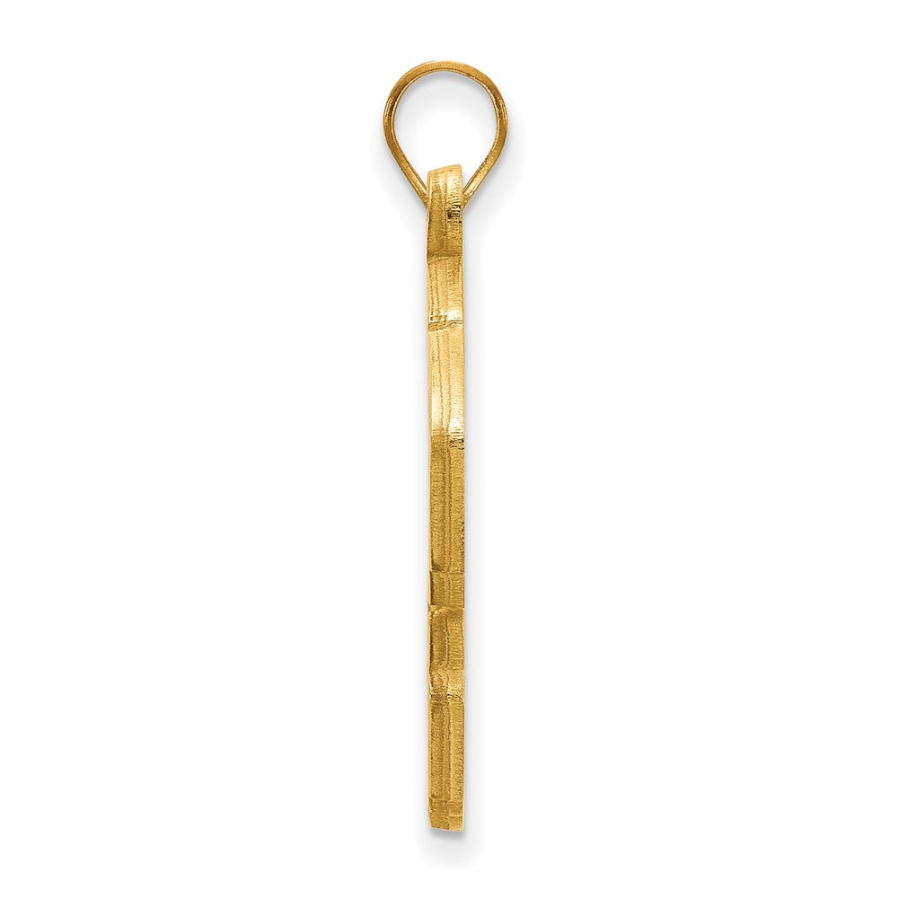 Show off your school pride with the 14K Yellow Gold LogoArt Kansas State University Wildcat Extra Large Pendant. Crafted from durable 14K gold, this bold pendant features a sleek polished finish that catches the light with every move. Its generous size makes a statement, measuring 31 mm in length and 32 mm wide. Licensed by NCAA, it proudly displays the Kansas State Wildcats logo, symbolizing your loyalty. The laser-cut design ensures sharp details, and the 4 mm bail makes it easy to wear on your favorite chain. Perfect for true fans who want to wear their pride.