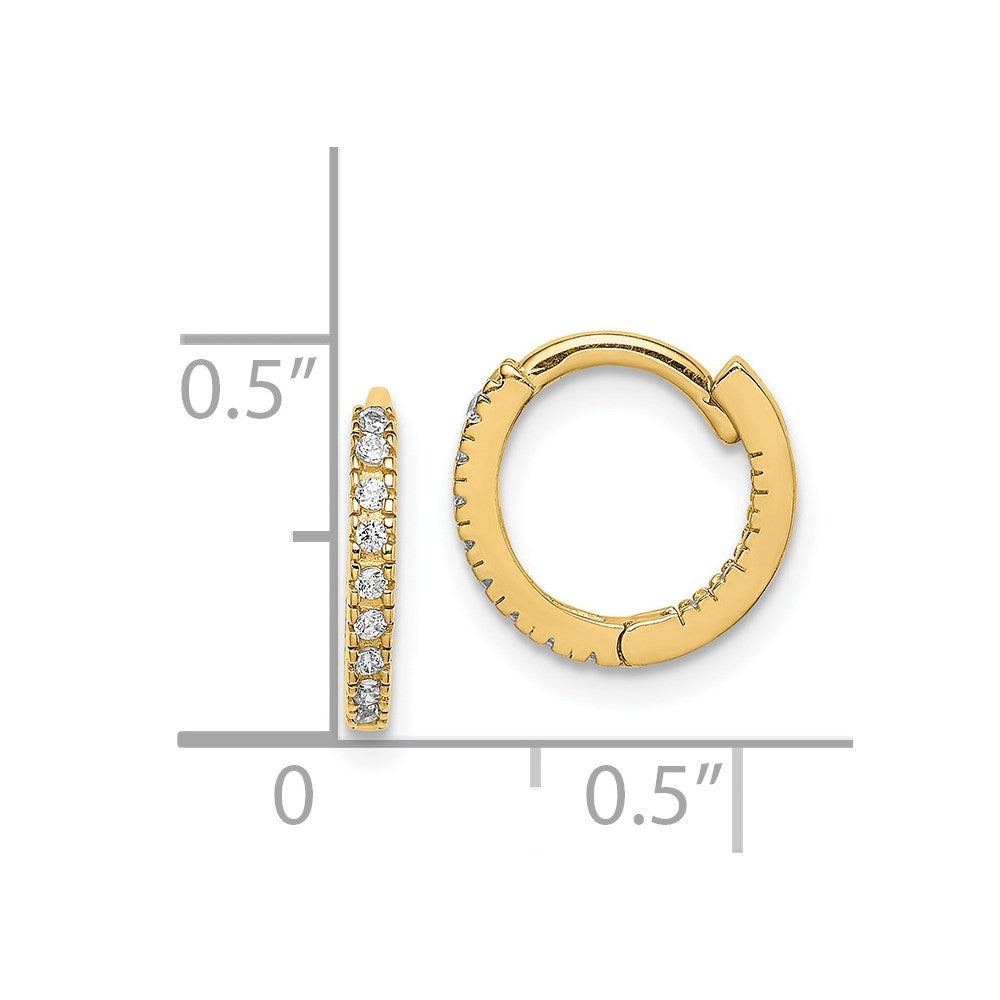 Add a touch of sparkle to your style with the 14K Yellow Gold Madi K CZ Hinged Hoop Earrings. These earrings shine with a polished finish on high-quality 14K gold and feature dazzling cubic zirconia stones that catch the light. The hinge design ensures a comfortable fit, making them perfect for everyday wear or special occasions. Small and graceful at just over 10 millimeters, they are ideal for women seeking subtle elegance. The secure post, notch, and lock closure keep these earrings in place all day. The 14K Yellow Gold Madi K CZ Hinged Hoop Earrings blend style and function effortlessly.
