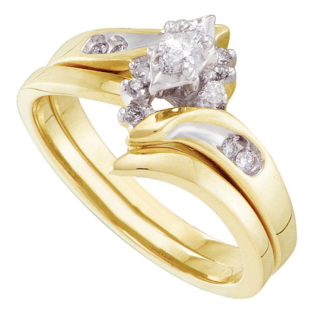 14k Yellow Gold Marquise Diamond Bridal Wedding Ring Set 1/5 Cttw