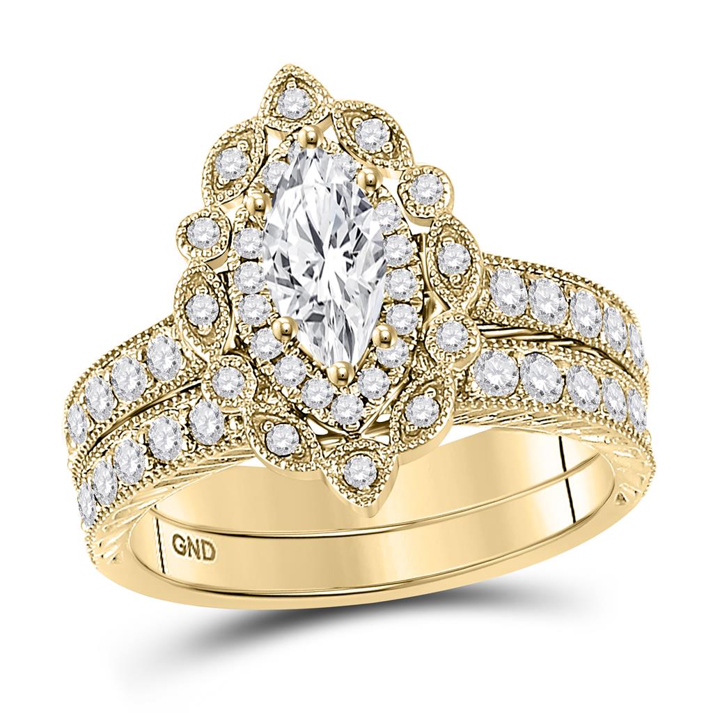 14k Yellow Gold Marquise Diamond Bridal Wedding Ring Set 2 Ctw (Certified)