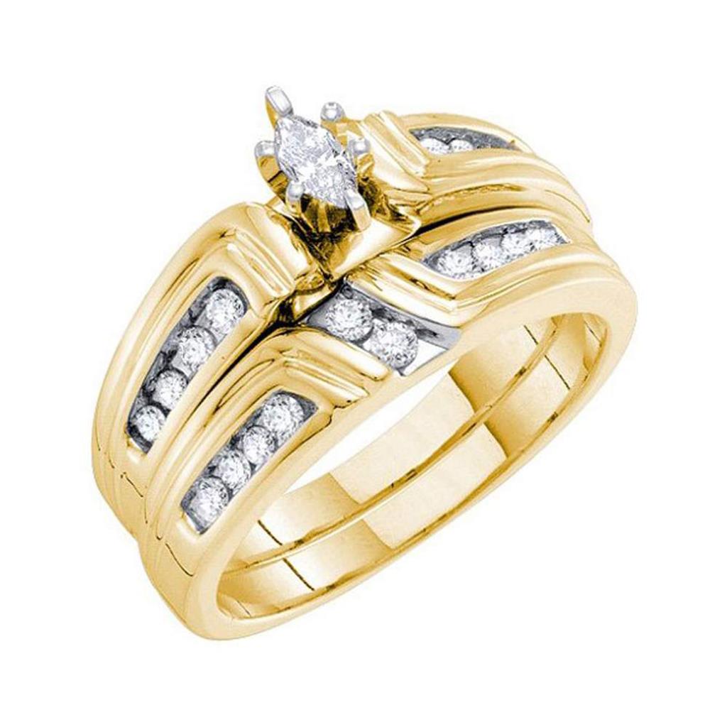 14k Yellow Gold Marquise Diamond Bridal Wedding Ring Set 3/8 Cttw