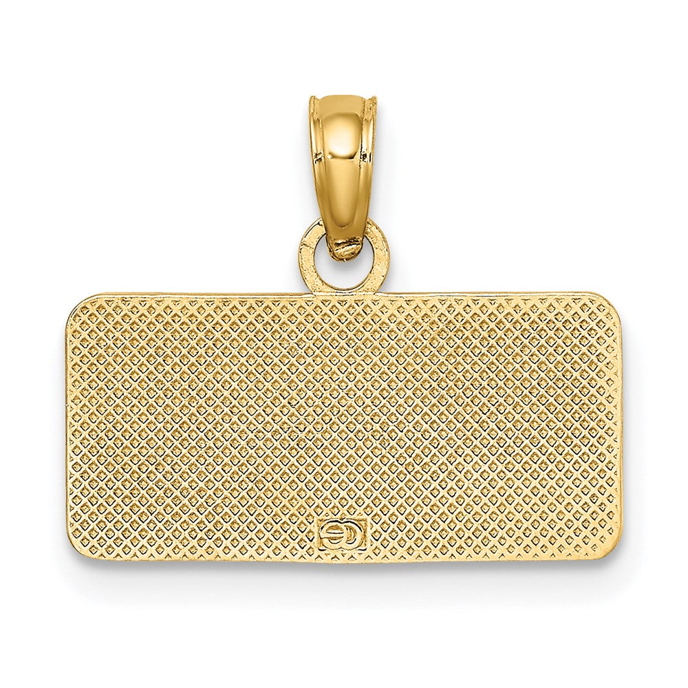This charming piece of jewelry is entitled '14k Yellow Gold OBX NORTH CAROLINA License Plate Charm'. It is crafted with precious 14k yellow gold and has a weight of 1.37 GM. The product is polished to perfection with a finish that measures 14.1 mm in length. The charm element of this product has a length of 8.7 mm, a thickness of 0.9 mm, and a width of 18 mm. As a solid feature, the manufacturing process of this product is casted. This is the perfect present for jewelry enthusiasts as it is sold individually, measuring 18 mm in width. The jewelry type for this product specifically falls under pendants & charms, making it a themed pendant/charm with textured properties. Additionally, the back of this product has a textured profile type as well. The width of the bail measures 4.5 mm while the bail length is 5 mm. The product's color is yellow, making it even more special for those who love gold jewelry.