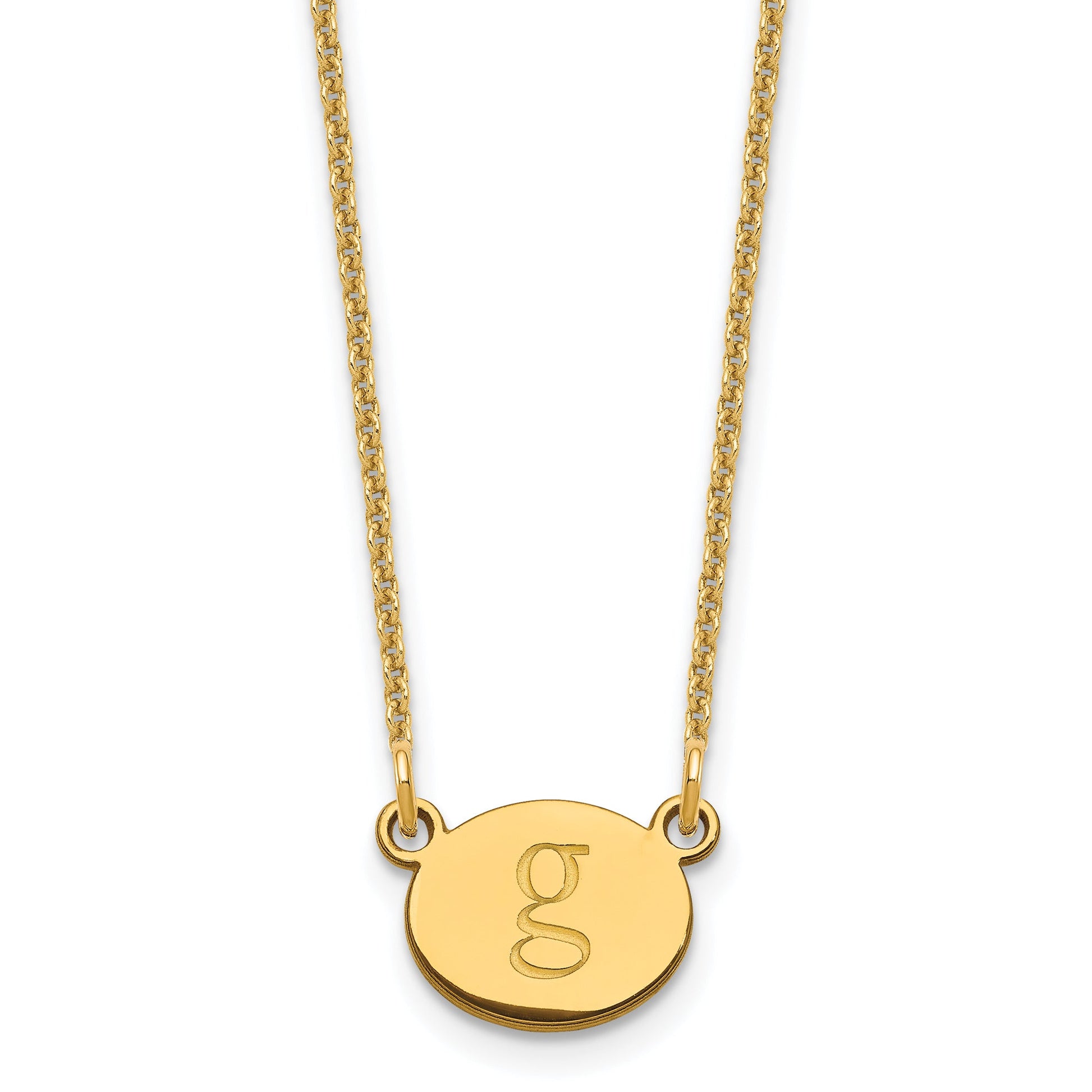 The 14K Yellow Gold Oval Initial Necklace is a chic piece for any woman’s jewelry collection. Crafted from high-quality 14K gold, it features a brushed finish that adds a modern touch. The necklace measures 18 inches with a delicate 1mm cable chain and a secure lobster clasp. A stylish oval charm, approximately 8 by 12 mm, highlights a personalized initial or name for a unique look. This necklace combines elegance and individuality, making it perfect for everyday wear or special occasions. The 14K Yellow Gold Oval Initial Necklace is a timeless piece that shines with personality.