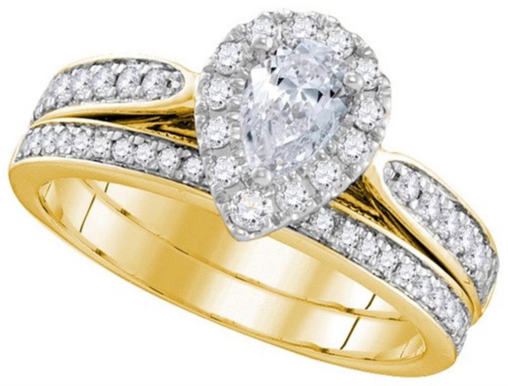14k Yellow Gold Pear Diamond Bridal Wedding Ring Set 1 Cttw (Certified)