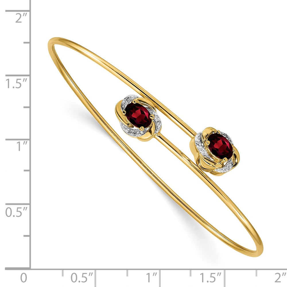 14k Yellow Gold Polished .03ct Natural Diamond and Garnet Flexible Bangle