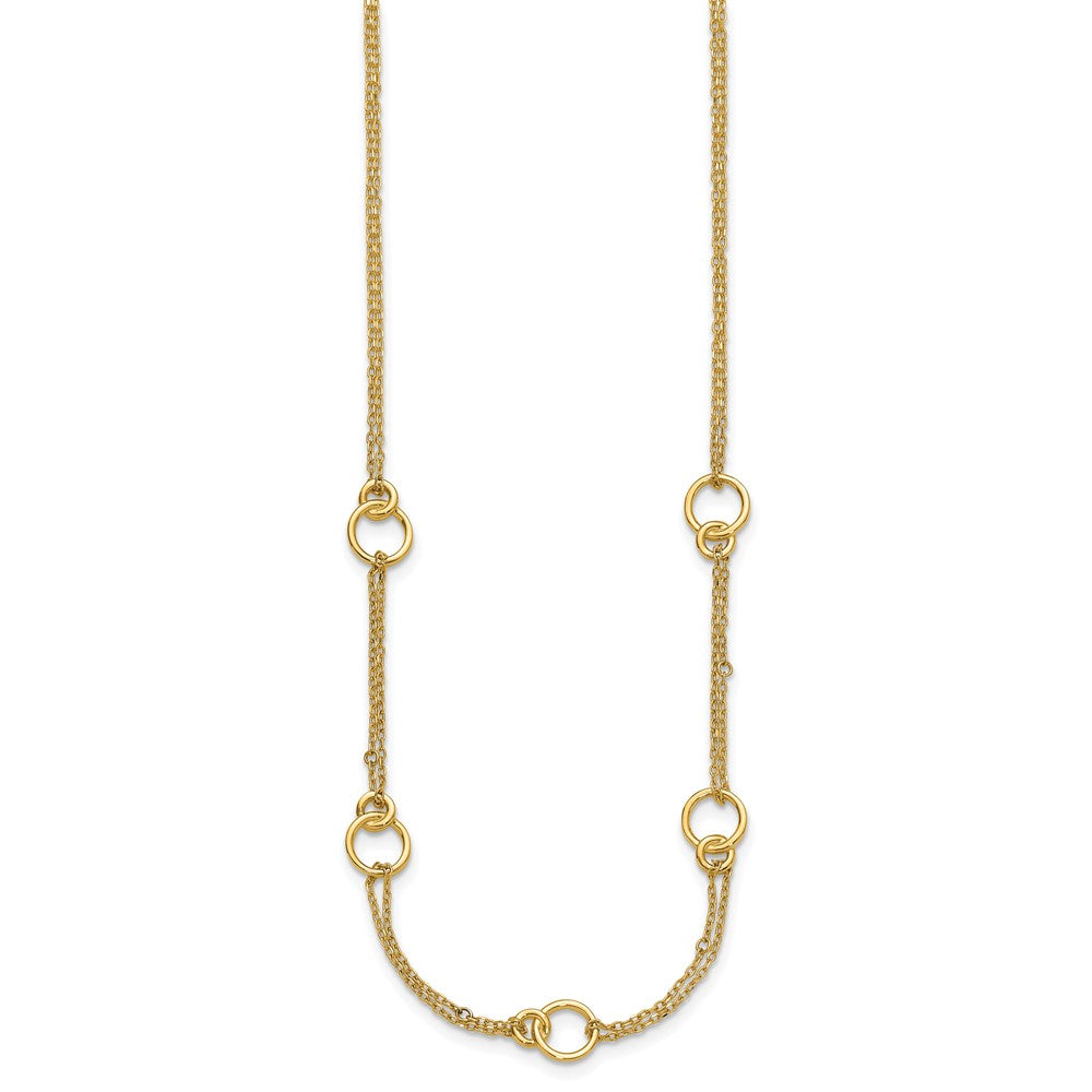 Discover the 14K Yellow Gold 14K Polished 2-Strand Double Circle W/ 2In Ext. Necklace, a piece that truly stands out. Crafted from pure 14K gold, it offers a sleek polished finish that catches the light beautifully. The necklace features two elegant strands connected with double circles, adding a touch of style. Its flexible design makes it comfortable to wear all day. With a 16-inch chain and a 2-inch extender, you can easily adjust the fit. Built for quality, this necklace is covered by a lifetime guarantee. The 14K Yellow Gold 14K Polished 2-Strand Double Circle W/ 2In Ext. Necklace blends beauty and durability in every detail.