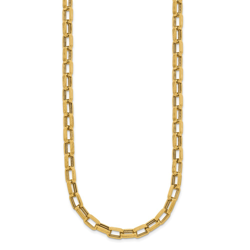 The 14K Yellow Gold 14K Polished 5.5mm Fancy Oval Link Necklace is a sleek piece designed to elevate your style. Crafted from pure 14K gold, this necklace measures 18 inches long and features a durable, lightweight design. Its polished finish and fancy oval links add a modern touch, making it perfect for daily wear or special occasions. A sturdy lobster clasp ensures secure fit, while the flexible chain offers comfort. With a lifetime guarantee, the 14K Yellow Gold 14K Polished 5.5mm Fancy Oval Link Necklace promises both quality and elegance that will last a lifetime.