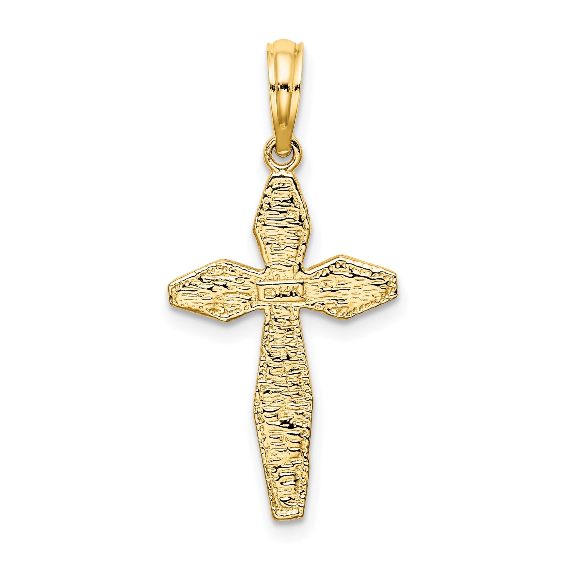 Discover the timeless elegance of the 14K Yellow Gold Polished and Textured Cross Charm. This beautiful piece of fine jewelry captures warmth with its bright yellow gold hue. Crafted from high-quality 14K gold, the charm stands out with its polished finish, lending a refined touch. The unique textured design adds dimension, inviting interest from every angle. The charm features a significant length of 31.75 mm and a width of 15 mm, making it an ideal centerpiece for your necklace collection. Embrace sophistication with the 14K Yellow Gold Polished and Textured Cross Charm, perfect for any occasion.
