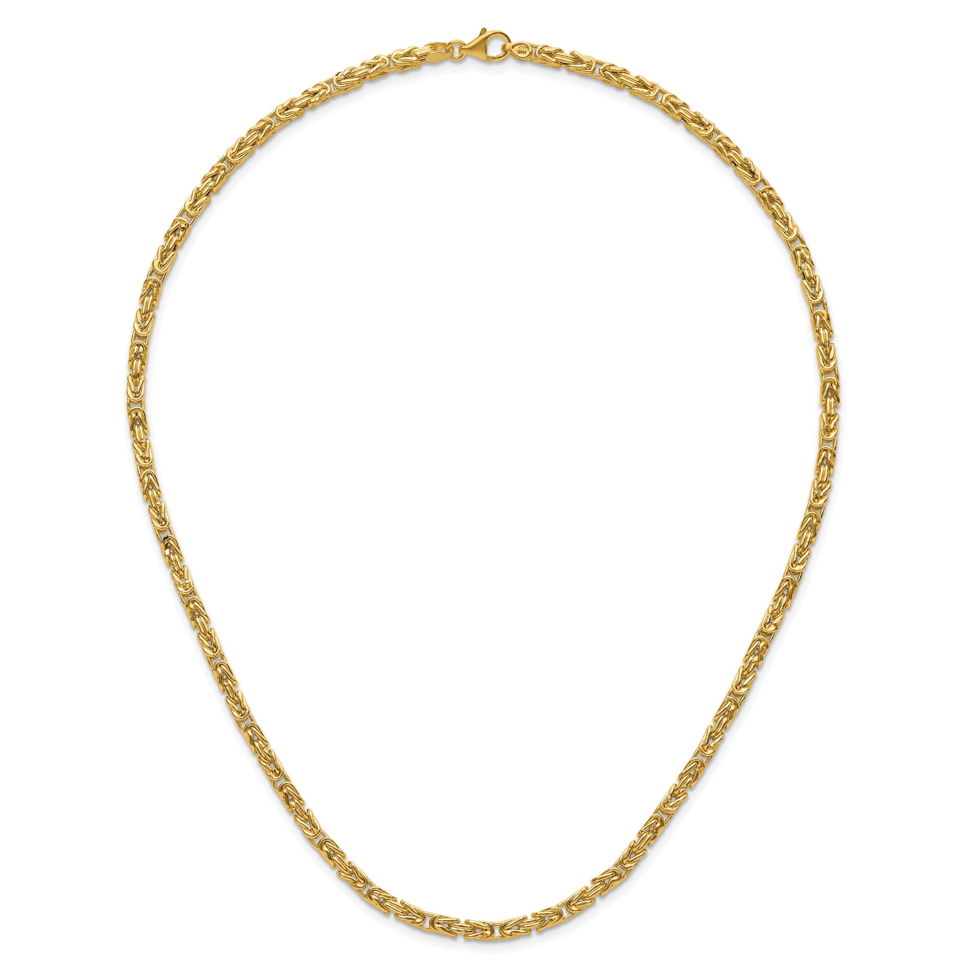 The 14K Yellow Gold 14K Polished Byzantine Link Necklace is a stylish piece perfect for daily wear. It features a sleek, polished finish that shines brightly and adds a touch of sophistication. The sturdy Byzantine chain measures 3.5mm in width and measures 18 inches long, making it versatile and easy to wear with any outfit. Crafted with care from high-quality gold, this necklace is designed to last and comes with a lifetime guarantee. Its hollow design keeps it lightweight, so you can wear it all day with comfort. The 14K Yellow Gold 14K Polished Byzantine Link Necklace is a timeless piece that highlights your style effortlessly.
