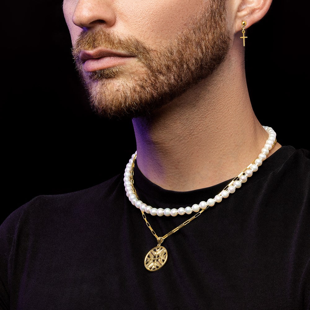 Embrace the timeless elegance of our 14K Yellow Gold Polished Cross Dangle Post Earrings. Crafted from high-quality 14-karat gold, these earrings shine with a polished finish that showcases their luxurious appeal. Measuring 19 mm in length and 6 mm in width, they feature a sleek cross design that dangles gracefully. These unisex earrings highlight a classic post and push back closure, perfect for secure wear. Whether for daily wear or special occasions, the 14K Yellow Gold Polished Cross Dangle Post Earrings deliver a touch of sophistication to any ensemble.