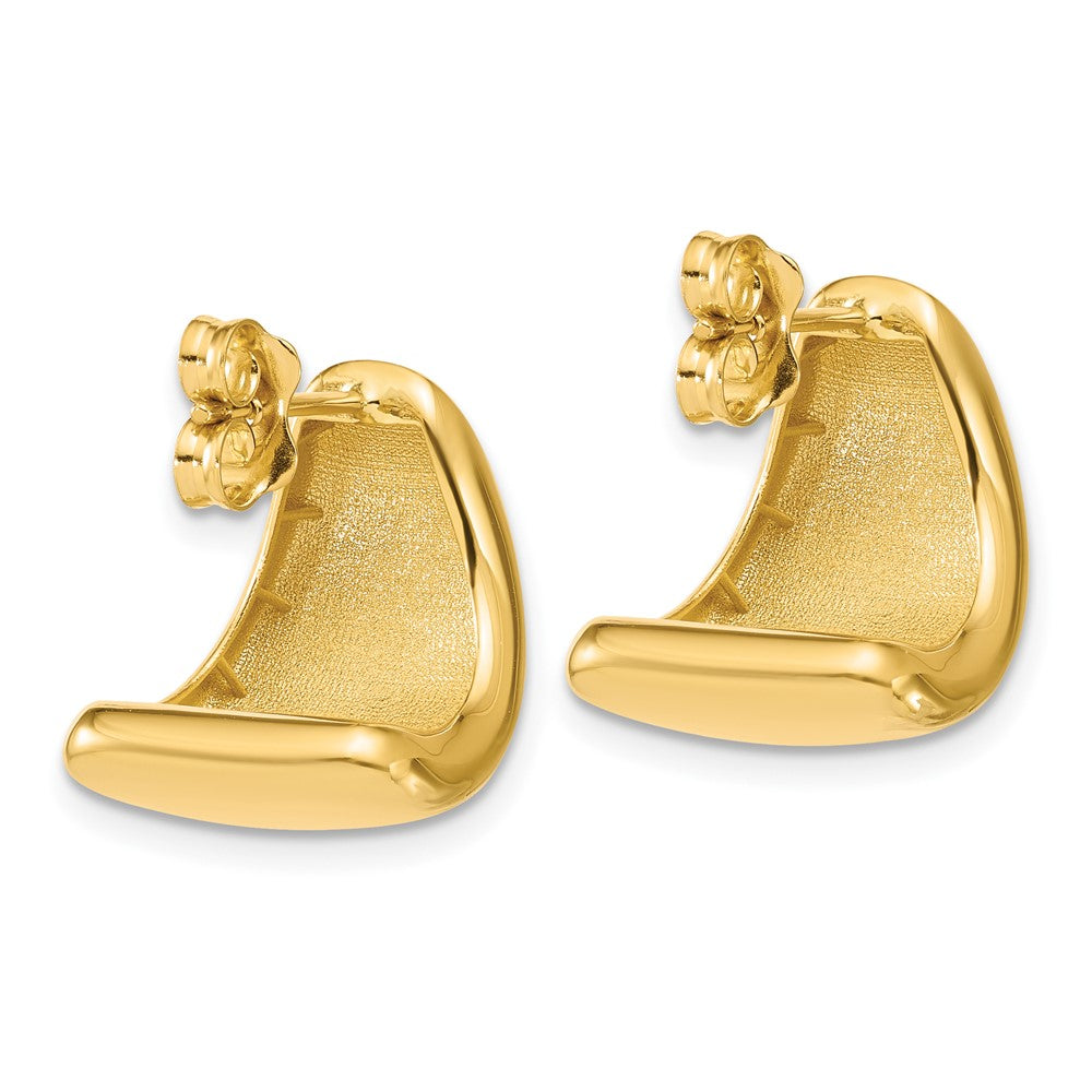 Add the 14K Yellow Gold 14K Polished Curve Post Earrings to your jewelry collection. These stylish earrings are crafted from pure 14K gold, giving them a warm, rich hue that shines with a polished finish. Each pair measures 17 mm long and 14 mm wide, making them perfect for daily wear or special occasions. The semi-solid drop design adds a touch of elegance, while the secure post and push-back closure keep them stay put. Designed for comfort and durability, the 14K Yellow Gold 14K Polished Curve Post Earrings come with a lifetime guarantee, ensuring lasting beauty and satisfaction.