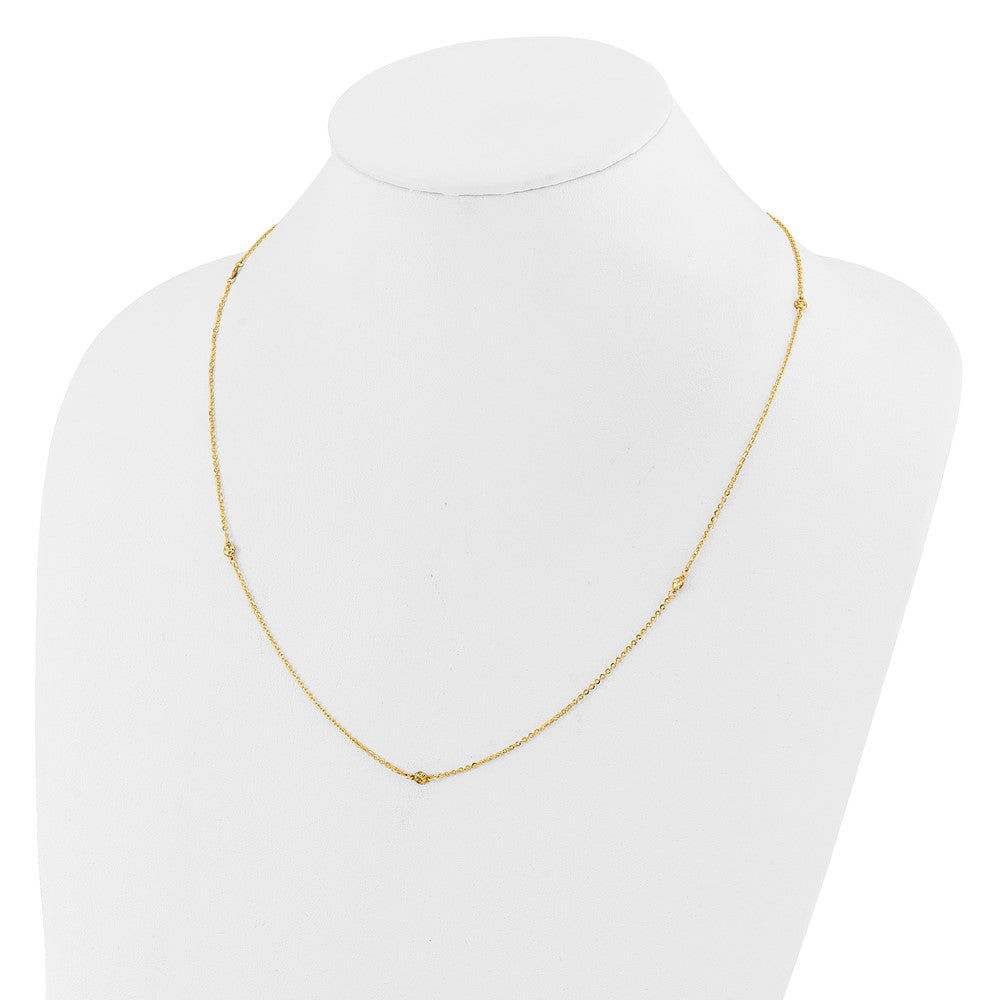 The 14K Yellow Gold Polished D/C 22-Inch Necklace is a sleek and stylish piece perfect for any woman's jewelry collection. Made from high-quality 14K yellow gold, it features a shiny polish finish that adds a touch of elegance. The necklace measures 22 inches and has a lightweight, durable cable chain that feels comfortable all day. It includes a charming pendant with a diamond-cut texture for added sparkle. The lobster clasp keeps it secure, and the design includes seven small elements for a modern look. The 14K Yellow Gold Polished D/C 22-Inch Necklace promises durability and timeless style.