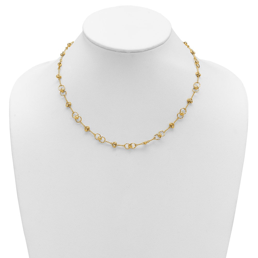 The 14K Yellow Gold Twisted Circles Necklace truly shines with its sleek design and high-quality finish. Measuring 18 inches with a 17-inch chain and a 1-inch extender, it offers a perfect fit for any style. The polished surface and diamond-cut details give it a bright, eye-catching look. The lightweight gold makes it comfortable for daily wear. The fancy lobster clasp keeps it secure, while the twist circles add unique charm. Crafted from pure 14K gold, this stunning necklace is backed by a lifetime guarantee. Ideal for casual or dress-up occasions, the 14K Yellow Gold Twisted Circles Necklace delivers timeless style with a modern twist.