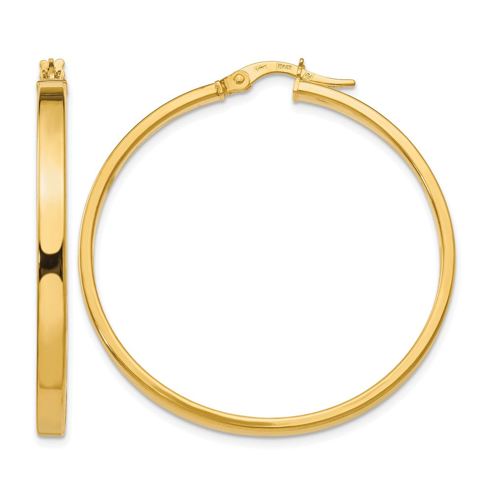 Introducing the 14K Yellow Gold Polished Earrings, a dazzling addition to any jewelry collection. Crafted with 14K gold, these earrings feature a refined polished finish that enhances their sheen. With a length of 39 mm and a width of 38 mm, these earrings offer a striking presence while maintaining an elegant look. The lightweight hollow design, achieved through a careful tubing process, ensures comfort. The wire and clutch closure provides security, so you can wear them with confidence. Whether for a special occasion or everyday wear, the 14K Yellow Gold Polished Earrings make a timeless fashion statement.