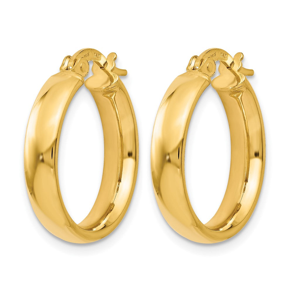 The 14K Yellow Gold Polished Earrings are a stunning choice for any jewelry collection. Crafted from 14-karat gold, these earrings feature a sleek polished finish that adds an elegant shine. Measuring 20.5 mm in length and 18 mm in width, they offer a versatile size for various occasions. The hollow design ensures they are lightweight and comfortable, while the wire and clutch closure provides security. Ideal for women seeking timeless hoop earrings, these pieces promise lasting beauty with a lifetime guarantee. Elevate your style with the 14K Yellow Gold Polished Earrings.