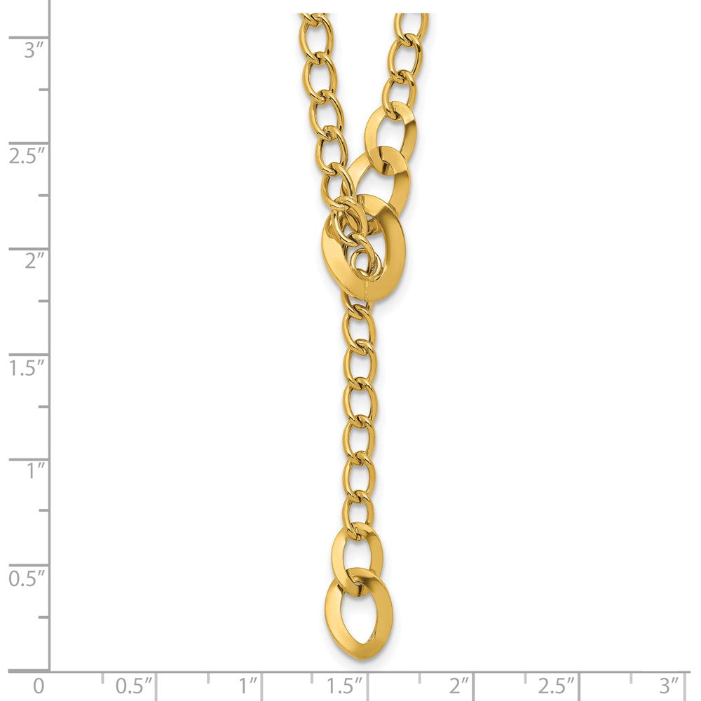 Introducing the 14K Yellow Gold 14K Polished Fancy Curb Link Lariat Necklace, a perfect addition to your jewelry collection. This necklace features a smooth polished finish and a sturdy curb chain, 18 inches long with a 4.15mm width, offering great durability. Its standout pendant measures 65.5mm by 10.25mm, adding a stylish touch to your look. Crafted from pure 14K gold, the necklace is lightweight yet strong, making it super comfy for daily wear. The fancy lobster clasp ensures a secure fit, and a lifetime guarantee backs this elegant piece. The 14K Yellow Gold 14K Polished Fancy Curb Link Lariat Necklace truly blends style and quality.