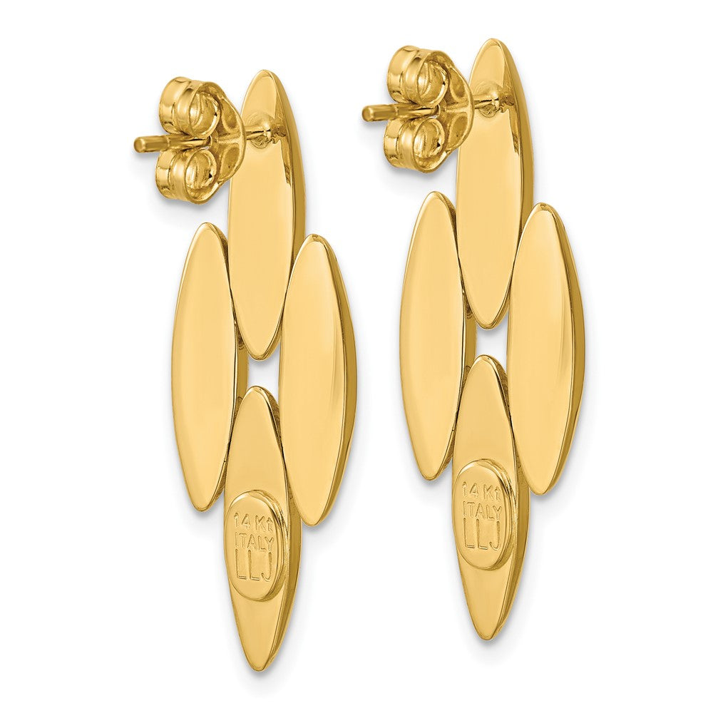 Elevate your style with the 14K Yellow Gold Fancy Dangle Post Earrings. Crafted from pure 14K gold, these earrings feature a polished finish that catches the light perfectly. Measuring 33.8 mm long and 12.75 mm wide, their elegant drop design adds a touch of class to any look. The sturdy post and push-back closure ensure a comfortable fit and secure wear. Designed for women who want beauty and durability, the 14K Gold Fancy Dangle Post Earrings come with a lifetime guarantee, making them a timeless addition to your jewelry collection.