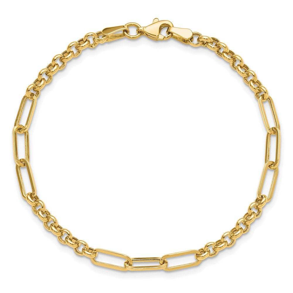 The 14K Yellow Gold 14K Polished Fancy Link Bracelet offers a sleek, modern touch to any style. Crafted from high-quality 14K gold, it features a polished finish that adds shine. The bracelet measures 7.25 inches long with a 4mm wide chain, making it comfortable and versatile for both men and women. The sturdy lobster clasp keeps it secure, while the solid design promises durability. Perfect for everyday wear or special occasions, the 14K Yellow Gold 14K Polished Fancy Link Bracelet combines elegance with reliability and comes with a lifetime warranty, making it a smart, stylish choice.