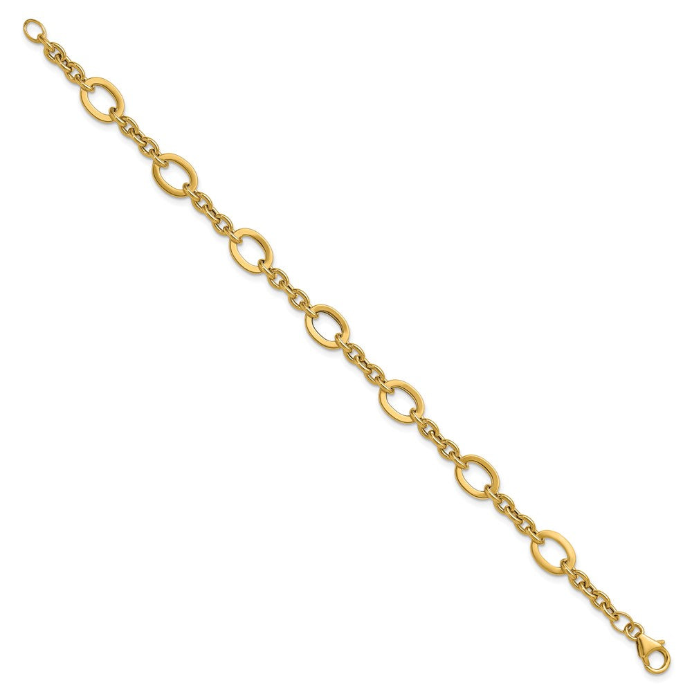 The 14K Yellow Gold 14K Polished Fancy Link Bracelet is perfect for adding a touch of elegance to any outfit. Made from high-quality 14K gold, this bracelet features a sleek, polished finish that shines with every move. Its flexible design ensures a comfortable fit, while the fancy link adds a stylish flair. The lobster clasp keeps it secure, making it great for daily wear or special occasions. With a length of 7.75 inches and a width of 7.85 mm, the 14K Yellow Gold 14K Polished Fancy Link Bracelet offers a timeless look you can enjoy for years.