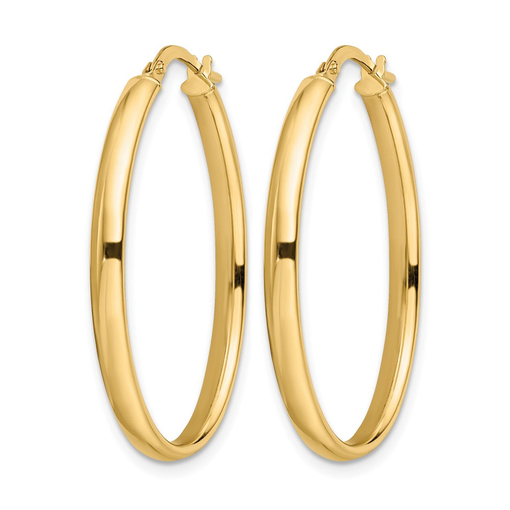 The 14K Yellow Gold Polished Oval Hoop Earrings offer a touch of timeless elegance to any ensemble. Made from premium 14K yellow gold, these earrings gleam with a polished finish. With their classic oval shape, the hoops measure 34 mm in length and 23 mm in width, making them just the right size for daily wear or special occasions. Hollow yet durable, they ensure comfort without compromising on style. An easy wire and clutch closure keeps these beauties secure all day. Each pair comes with a lifetime guarantee, adding peace of mind to the mix. Add the 14K Yellow Gold Polished Oval Hoop Earrings to your collection for effortless grace.