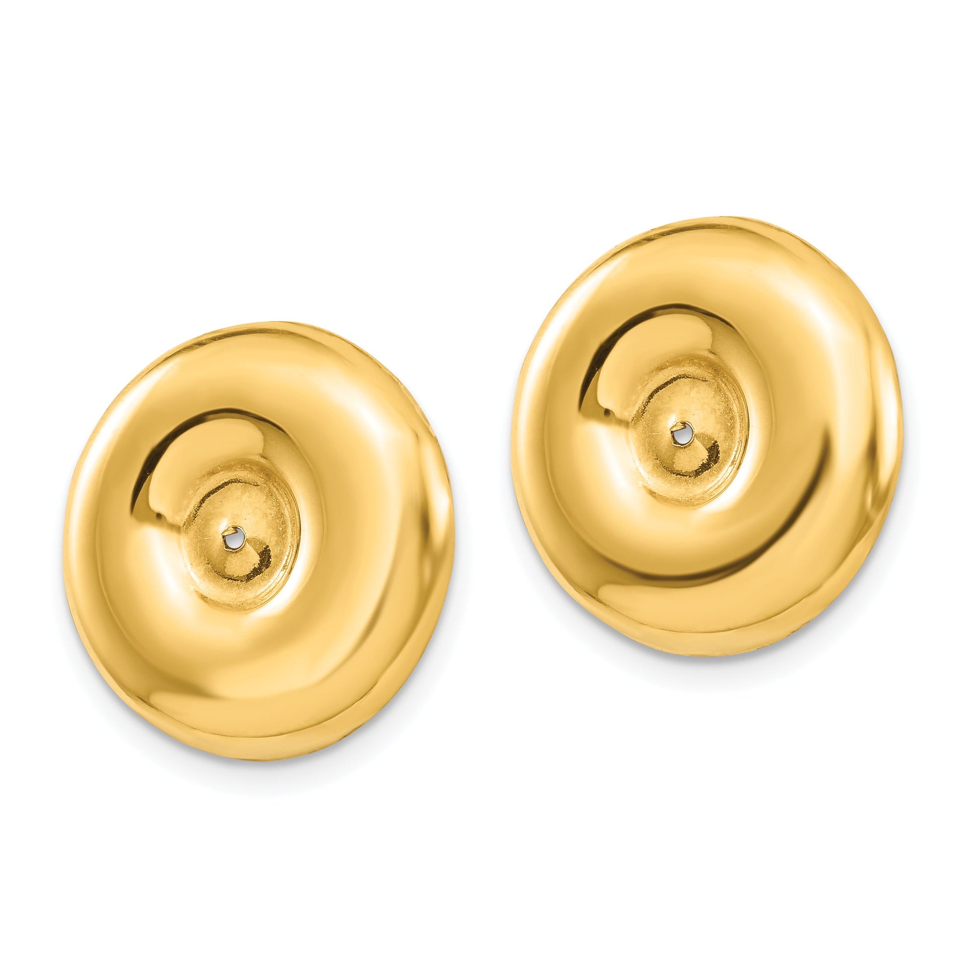 Meet the 14K Yellow Gold Polished Round Fancy Earring Jackets—crafted for those who adore timeless elegance. Fashioned from pure 14K gold, this piece gleams with luxurious warmth. Its sturdy, solid design stems from a meticulous die-struck technique, ensuring it’s as enduring as it is stylish. Measuring a captivating 17 mm, these earring jackets offer a perfect blend of sophistication and charm. Designed specifically for women, they effortlessly enhance any pair of earrings. The 14K Yellow Gold Polished Round Fancy Earring Jackets are a chic addition to your jewelry collection, embodying timeless beauty and high quality.